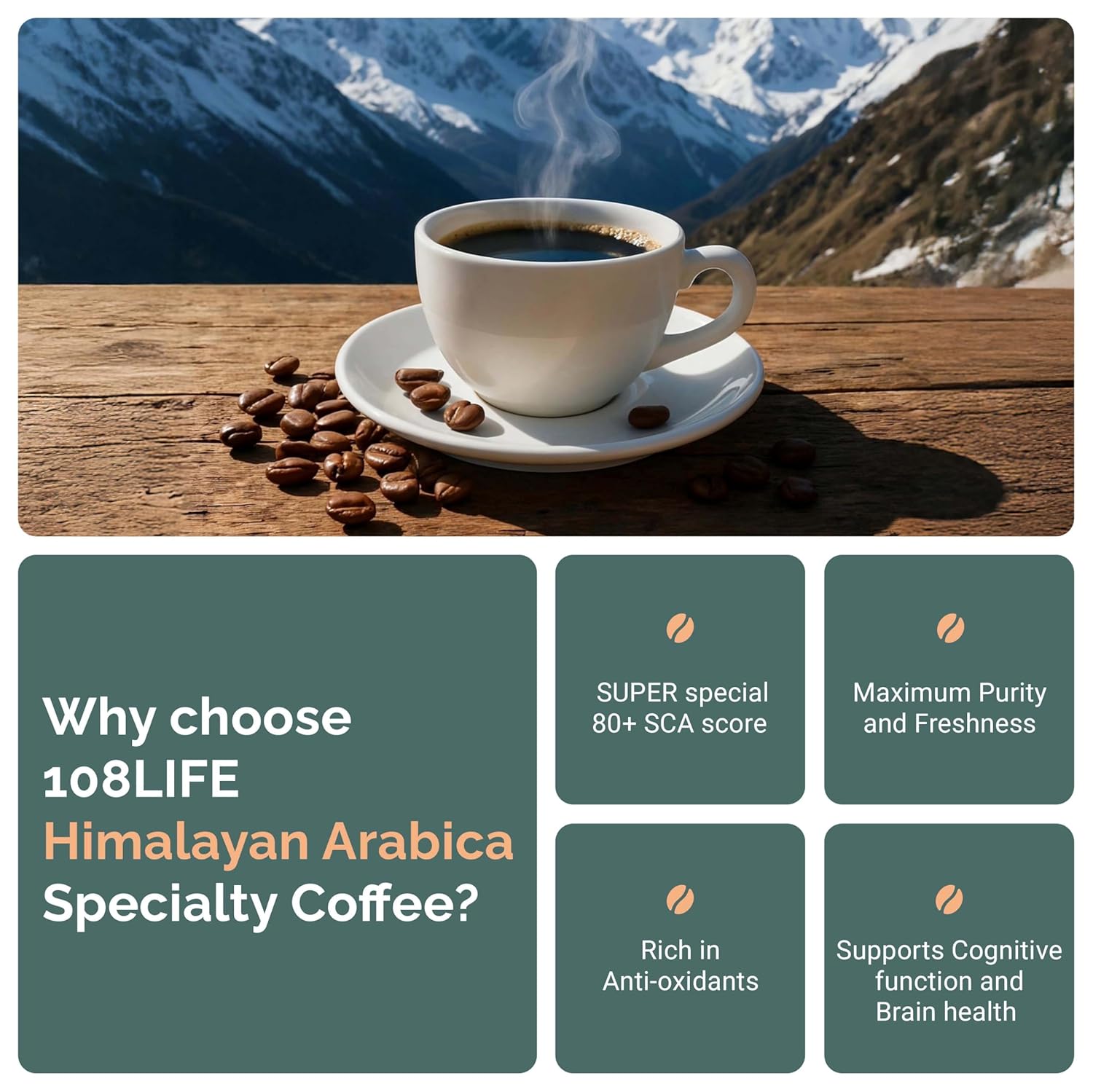 108LIFE Himalayan Arabica Specialty Coffee | Medium Roast Ground Coffee from the Heart of the Mountains | Rich in Antioxidants | Pure & Natural | 10 oz – Makes 20 Cups