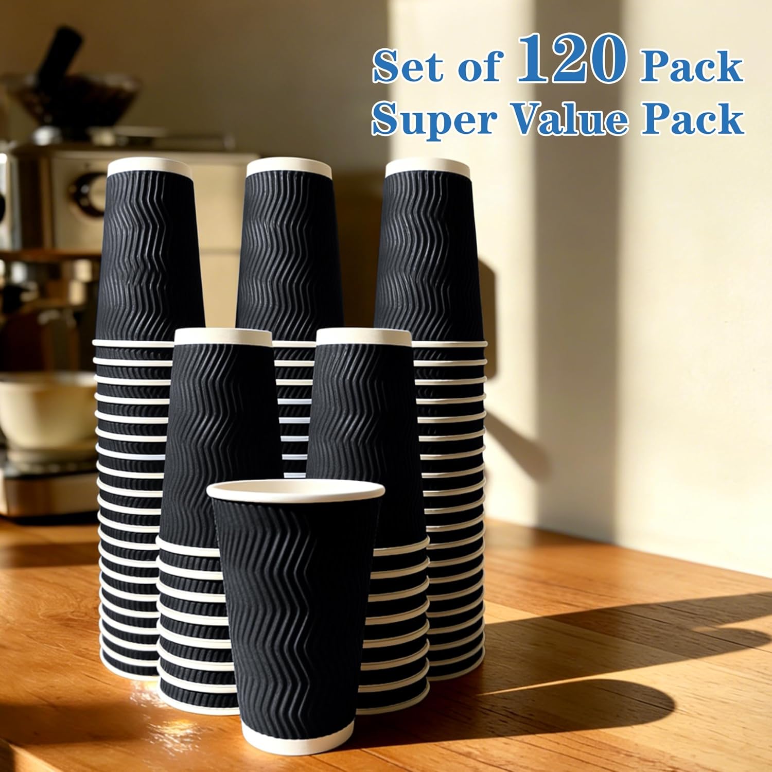 120 Pack 16 oz Disposable Coffee Cups, To Go Insulated Ripple Wall Paper Coffee Cups for Coffee, Hot Chocolate, Cocoa and Hot/Cold Beverages(Black)