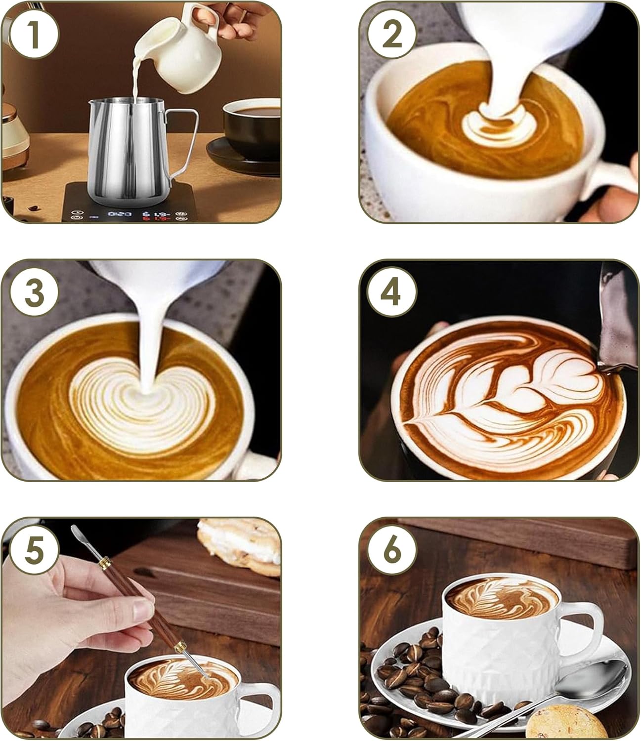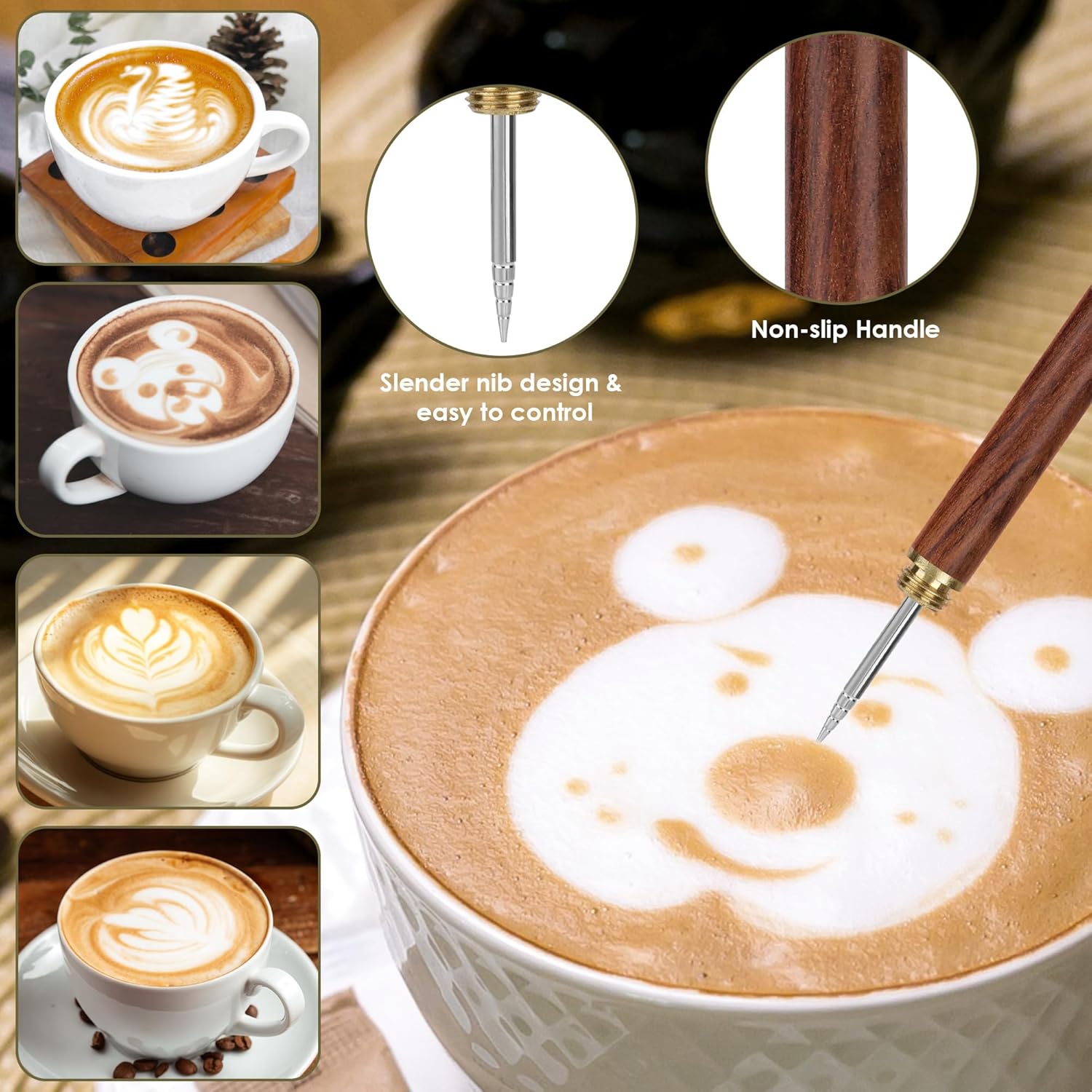 Bonus Latte Art Pen Included: A high-quality, easy-to-grip latte art pen is included, allowing you to easily draw hearts, tulips, and roses like a professional barista.