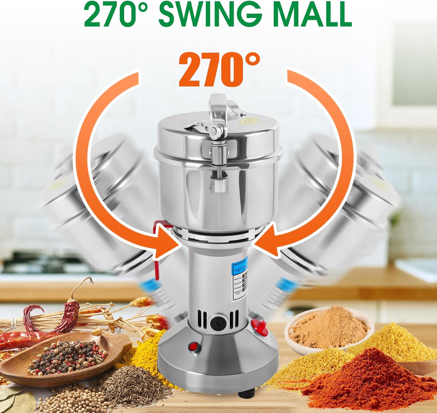 【Triple-Blade Versatility】 Includes grinding, rotary, and powder removal blades to process diverse dry ingredients: wheat, coffee, nuts, spices, and medicinal herbs (not for wet/oily items).