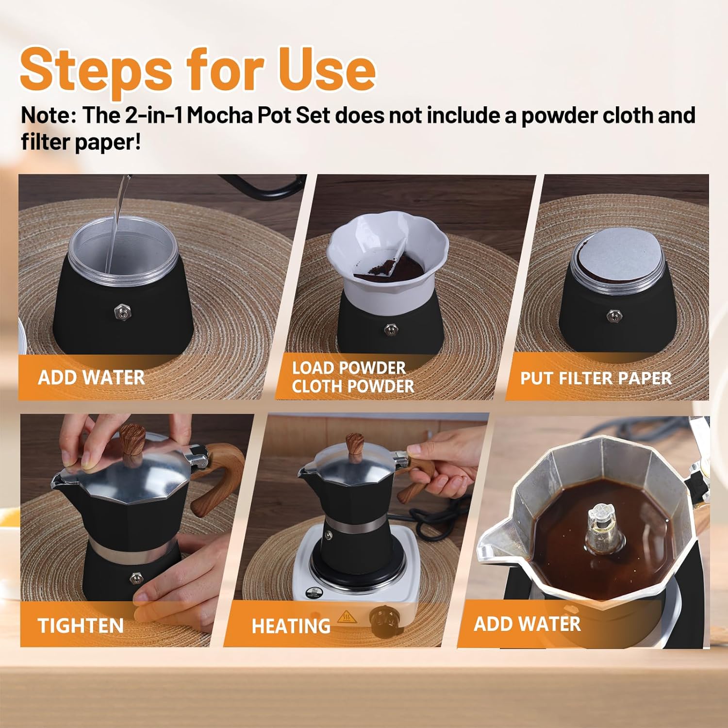 2-in-1 Aluminum Moka Pot Set with Electric Stove Classic Stovetop Espresso Coffee Maker 150ml 5oz Mocha Express Portable Camping Travel Preferred Cafe Makers Italian Cuban Café Brewing 3 Cup