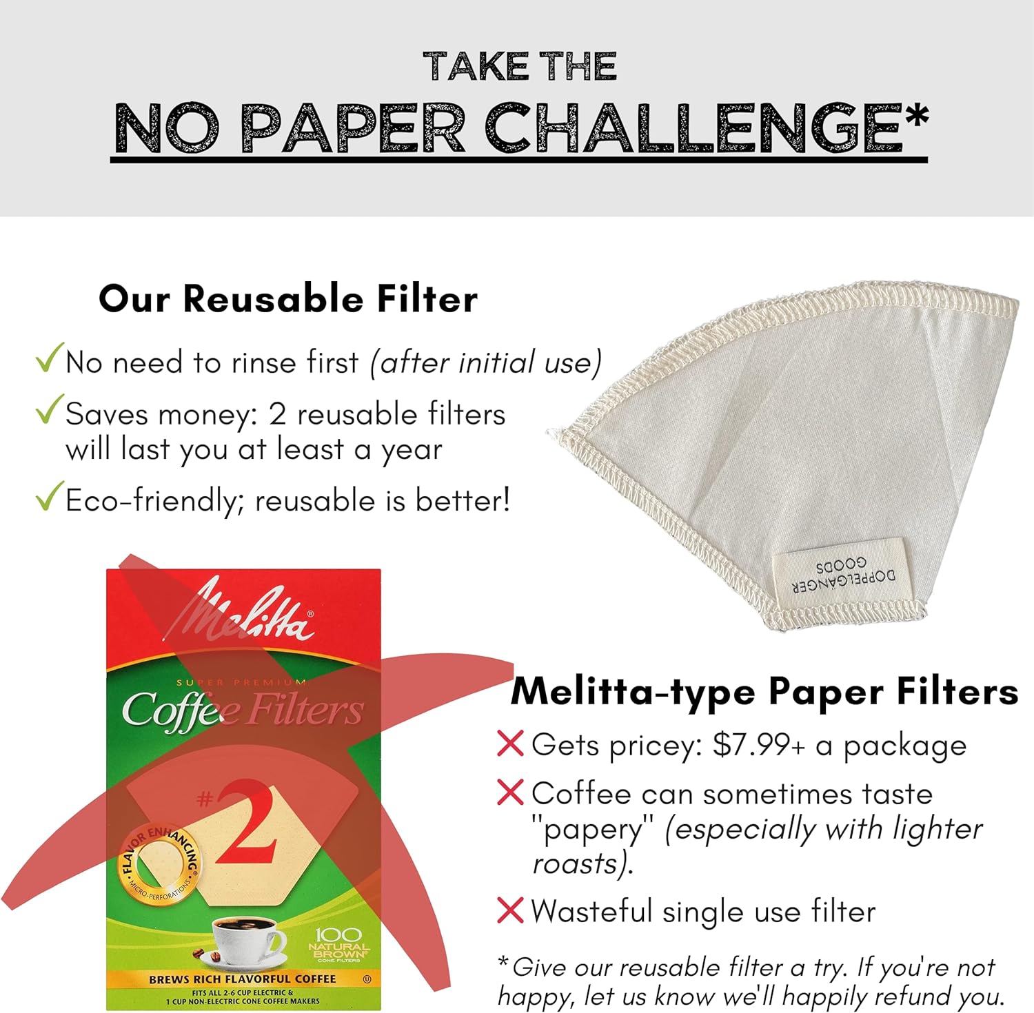 ☕️ ❛ Hands Down Best Cone #2 Filter ❜ Each cloth coffee filter will last you 200+ uses. And we give you 2! So give us a try. If you don’t love it, we’ll be sure to make things right.