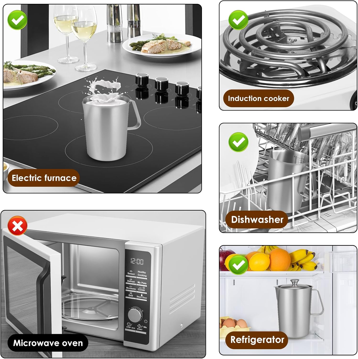 [Easy to Clean] The Stainless Steel Pitcher with Lid can be easily cleaned in the dishwasher or hand washed, just wipe it with a rag or sponge. In order to maintain its luster, please avoid using steel wire balls, as they will scratch the surface.