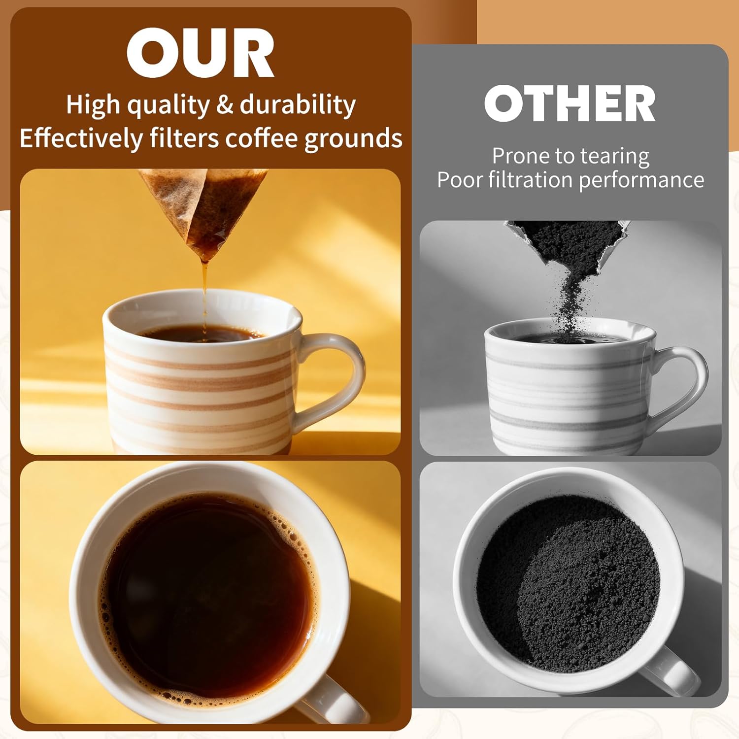 【Safety and Environmental Responsibility】These coffee filters #1 are made from natural wood pulp, free from fluorescence and bleach. Enjoy your coffee guilt-free, knowing that our eco-friendly unbleached coffee filters contribute to a healthier planet while enjoying your coffee.