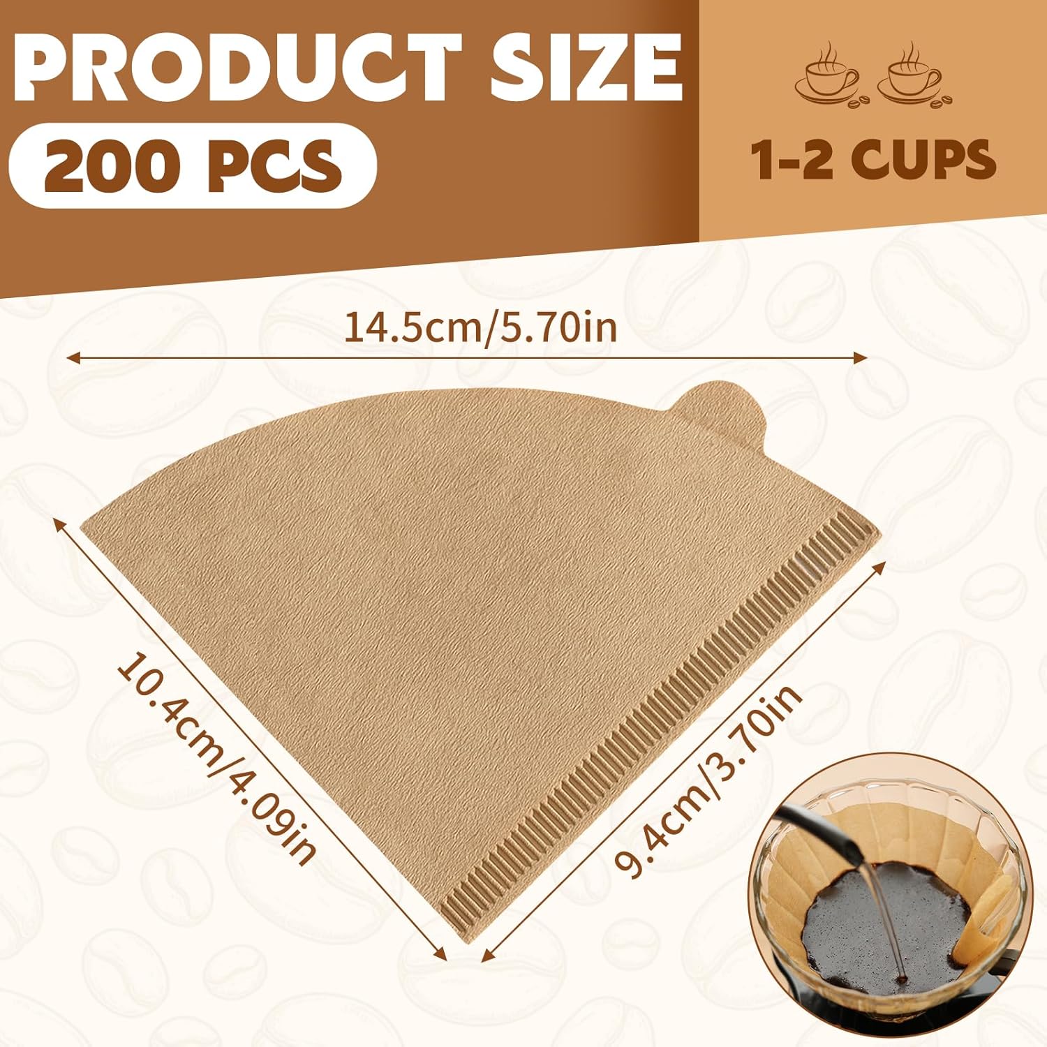 【Large Capacity for Daily Use】With a total of 200 disposable coffee filters, this package is suitable for over six months of daily brewing (based on one cup a day). Each filter features a convenient small ear for easy hand-held use, perfectly fitting any 1-2 cup coffee dripper and coffee maker.
