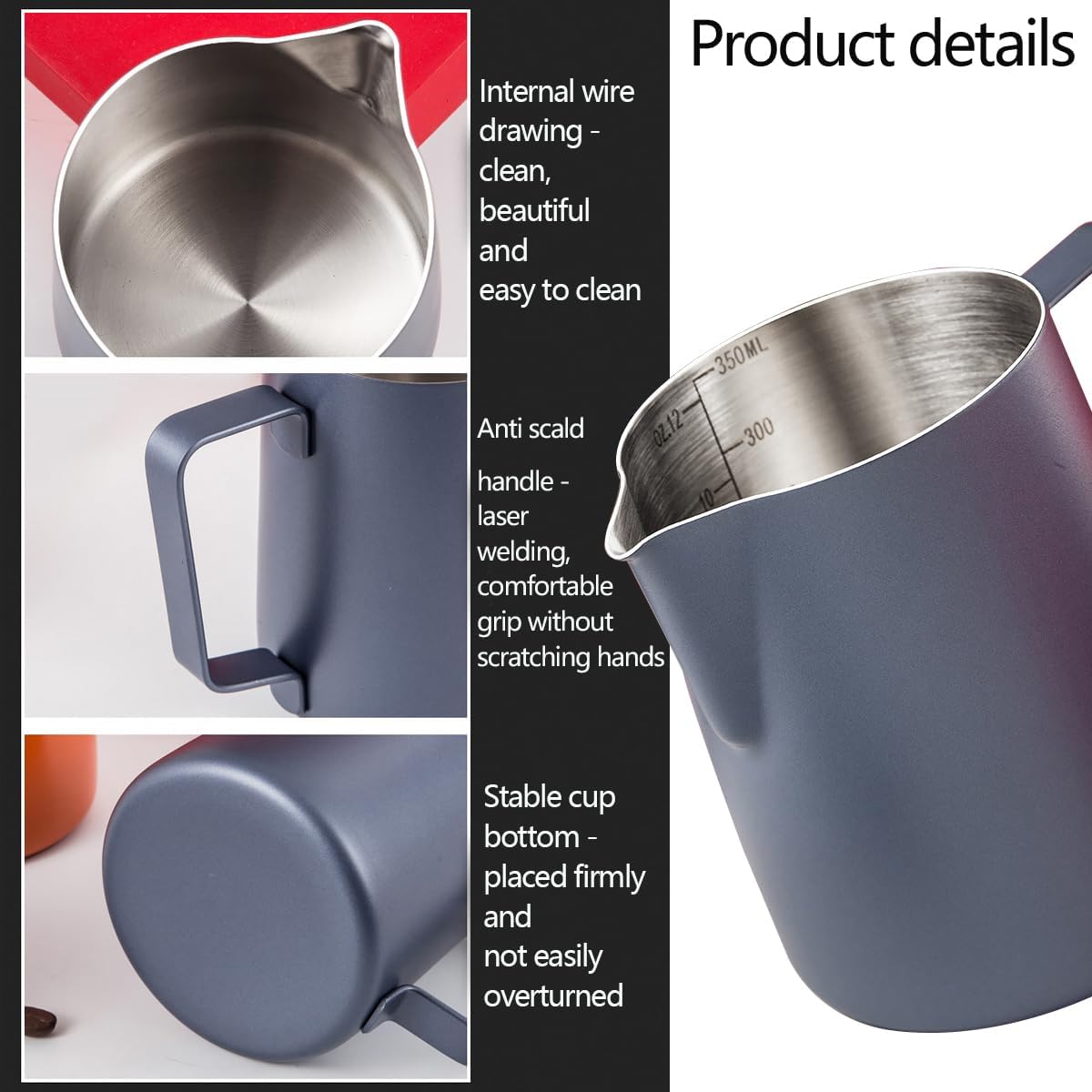 Innovative Design: The innovative spout ensures full control when you pouring milk and make Latte Art Work.