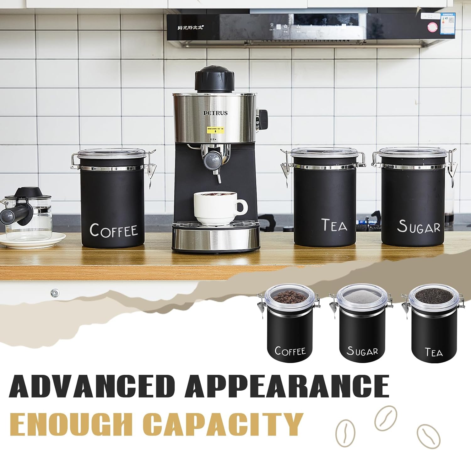 Generous Capacity: each airtight stainless steel container has a generous capacity of 60.8 oz, which are capable of storing a broad range of quantities, making them ideal for versatile use, such as coffee, tea, sugar or even grains