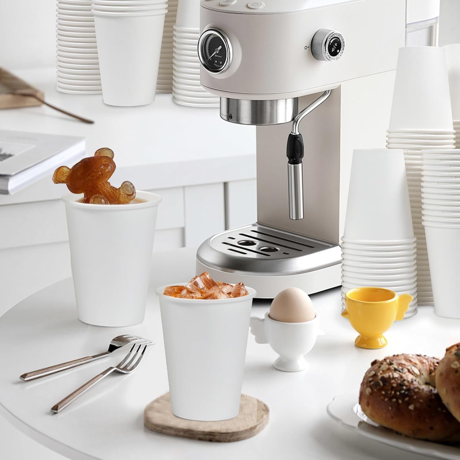 【Multi-purpose】These disposable white paper cups are made of premium food grade paper, healthier and nice looking, 12 oz disposable coffee cups are suitable for water, juice, coffee, tea and etc