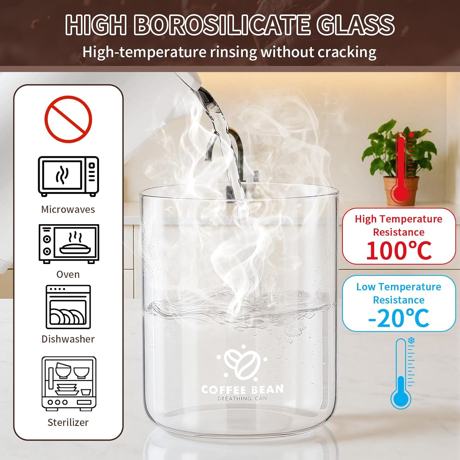 【High-Quality Borosilicate Glass Material】Crafted from food-grade, premium borosilicate glass, this coffee canister is non-toxic, odor-free, and ideal for storing coffee beans. It withstands temperatures from -20°C to 100°C, making it durable for daily use. Note: Not suitable for microwave, oven, dishwasher, or sterilizer.