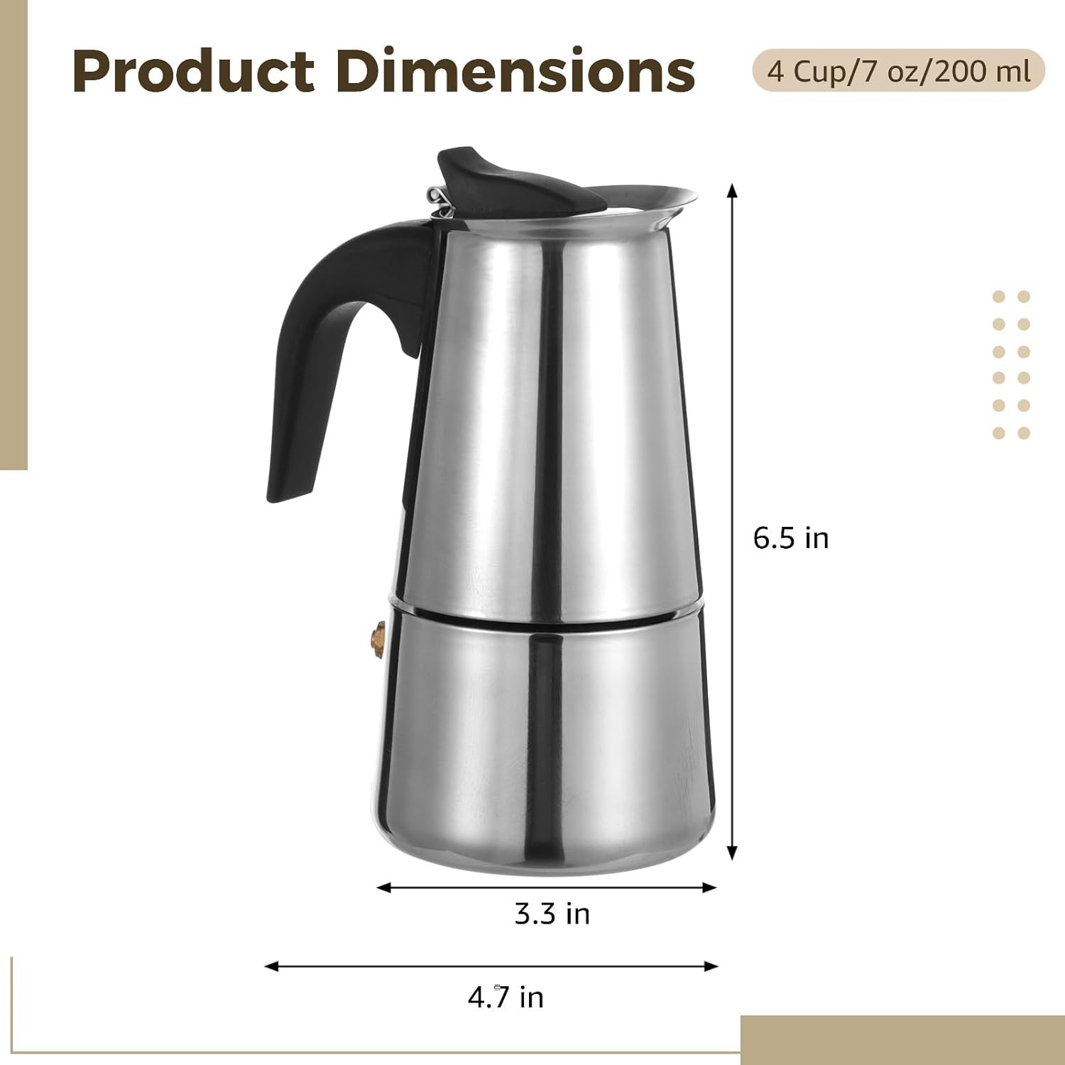 Rich 4 Cup Brewing: Delivers a 4 cup (7 oz/200 ml) capacity; lets you craft and enjoy flavorful cappuccino, latte, mocha, or macchiato at home; works on gas and ceramic cooktops; not compatible with induction cookers