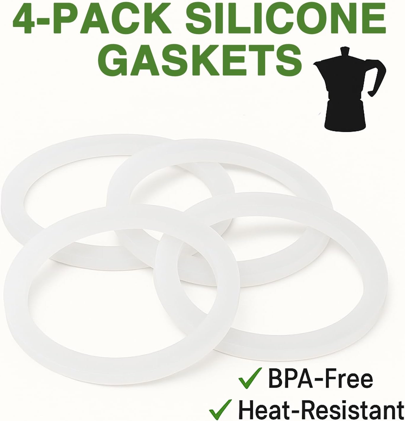 4 Pack Gasket Seal Rings for Bialetti Moka Express Dama 3/4 Cups-Food Grade Silicone Gaskets, Replacement Silicone Sealing Rings-Aluminium Stovetop Coffee Maker Pot Accessories