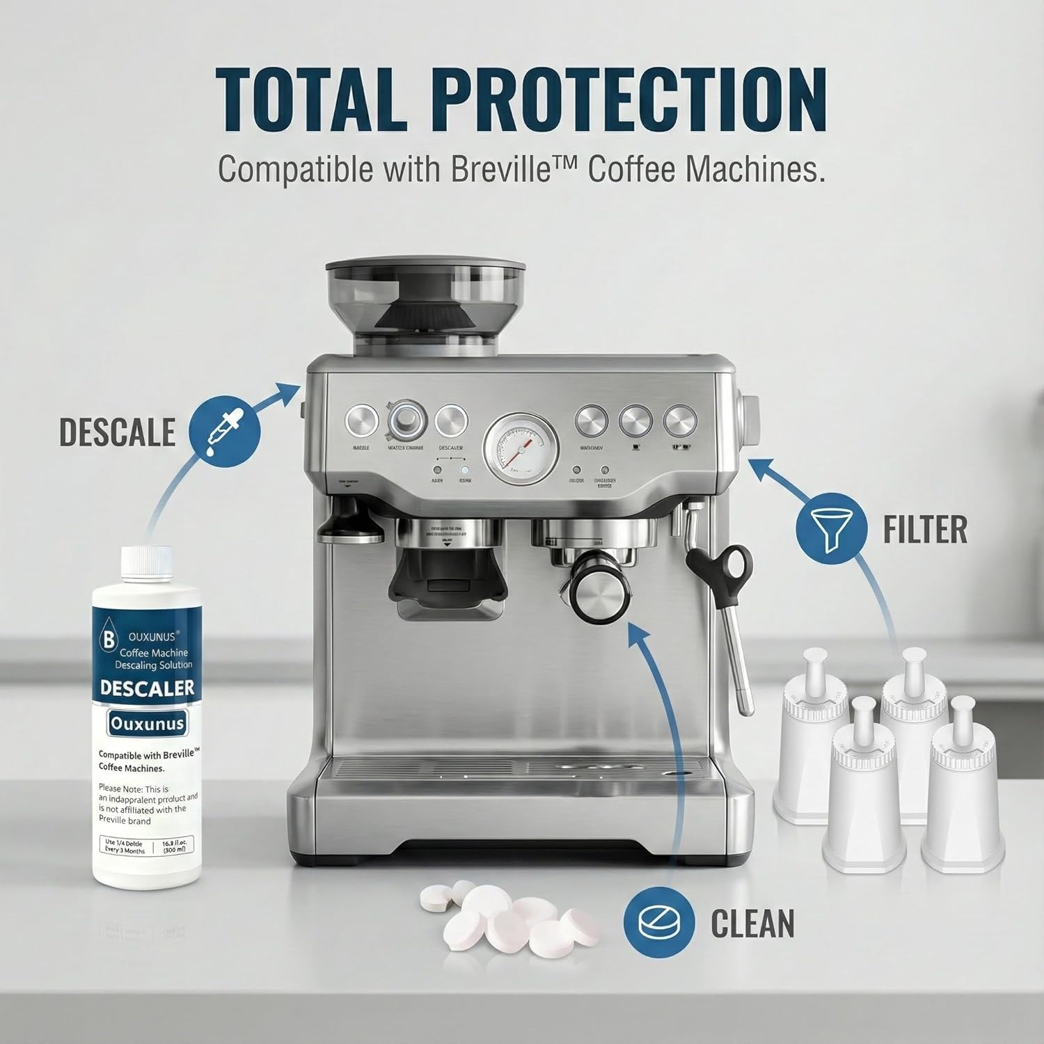 【Compatibility Note】: This product is manufactured by Ouxunus as an independent accessory designed to be compatible with specified espresso machines. It is not an OEM product, nor affiliated with, authorized, or endorsed by Breville or Sage