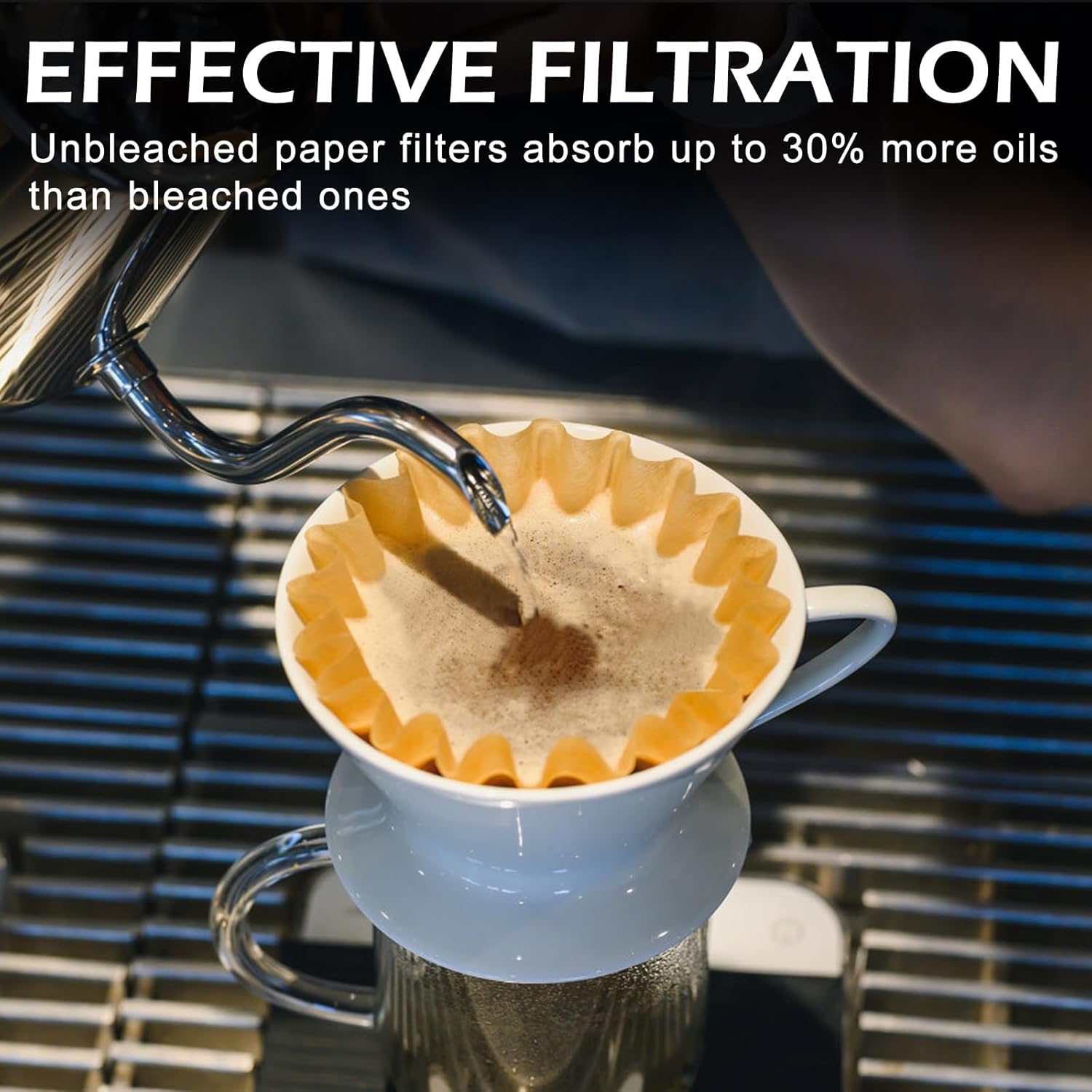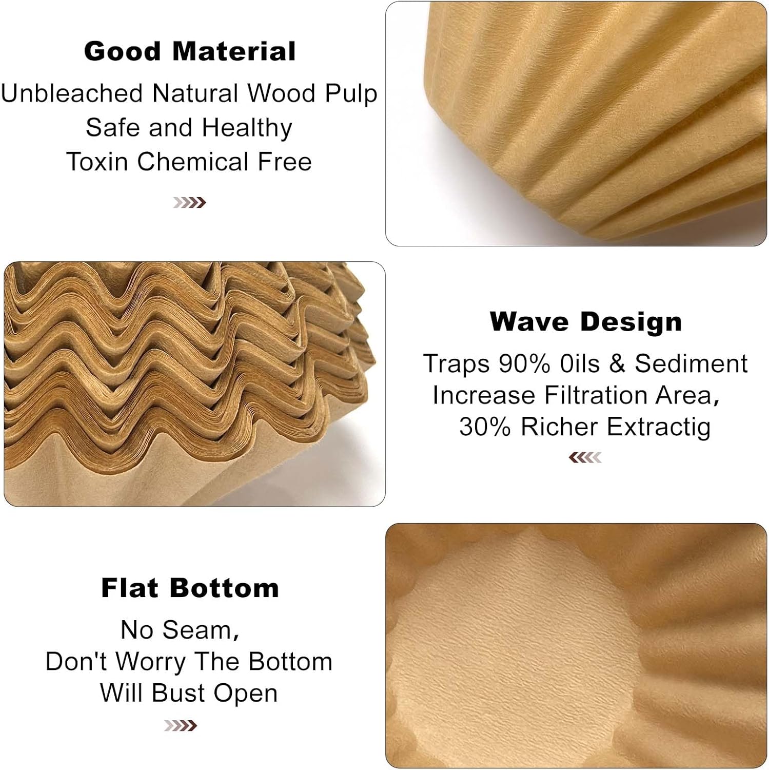 【Unbleached Safe Material】: Our basket coffee filters are crafted from food-grade, natural wood pulp. Totally toxin-free, they produce zero off-flavors whether brewed with hot or cold water and leave no paper residue behind — guaranteeing you a cleaner, richer, and truly authentic coffee-drinking experience