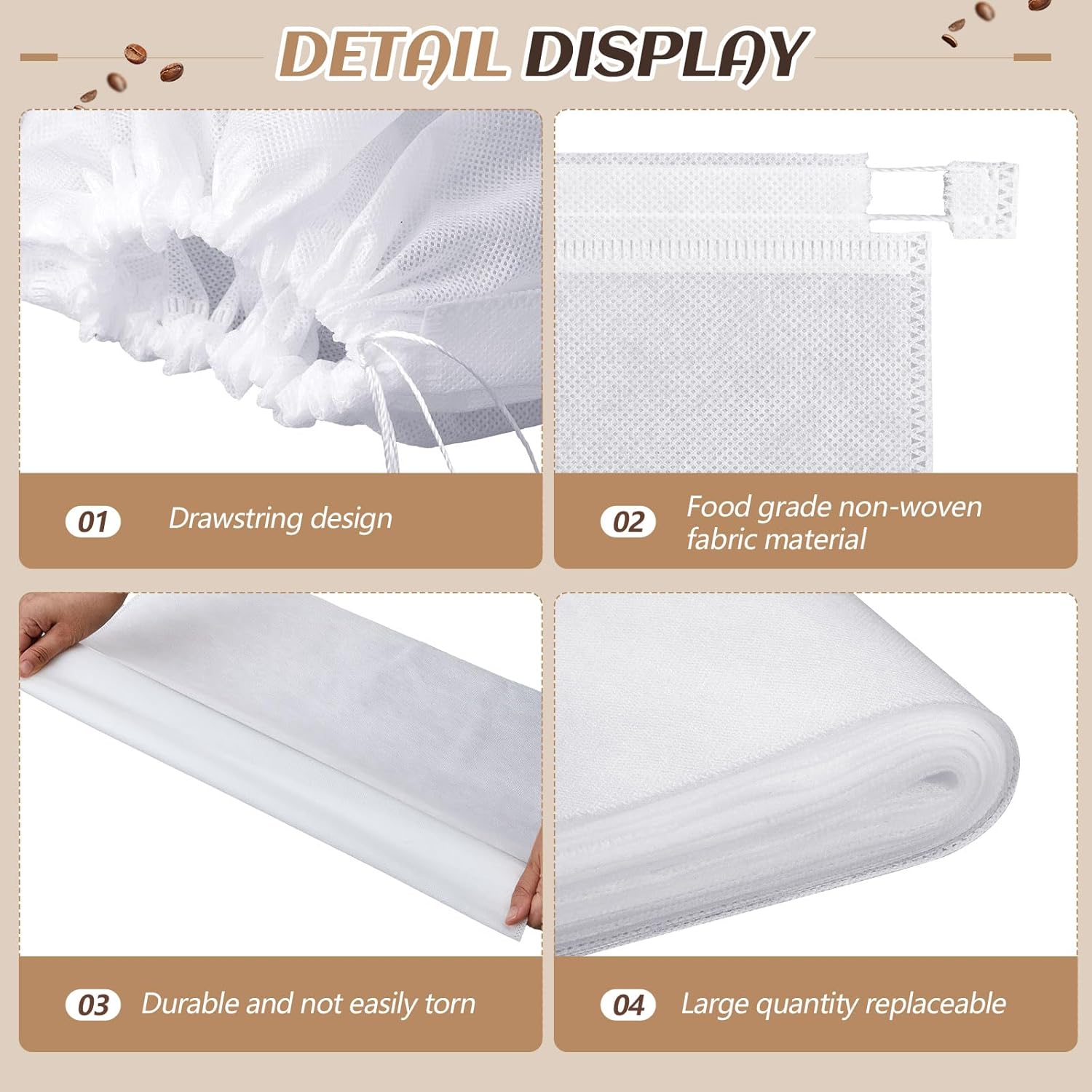 Easy Maintenance: our cold brew filter bags offer the advantage of easy maintenance; After a brewing process, you can conveniently discard the bag together with the coffee grounds or clean it for future use, relieving you from the hassle of significant cleaning tasks, also specially designed with the drawstring, offering easy operation, ensuring proper closure and opening