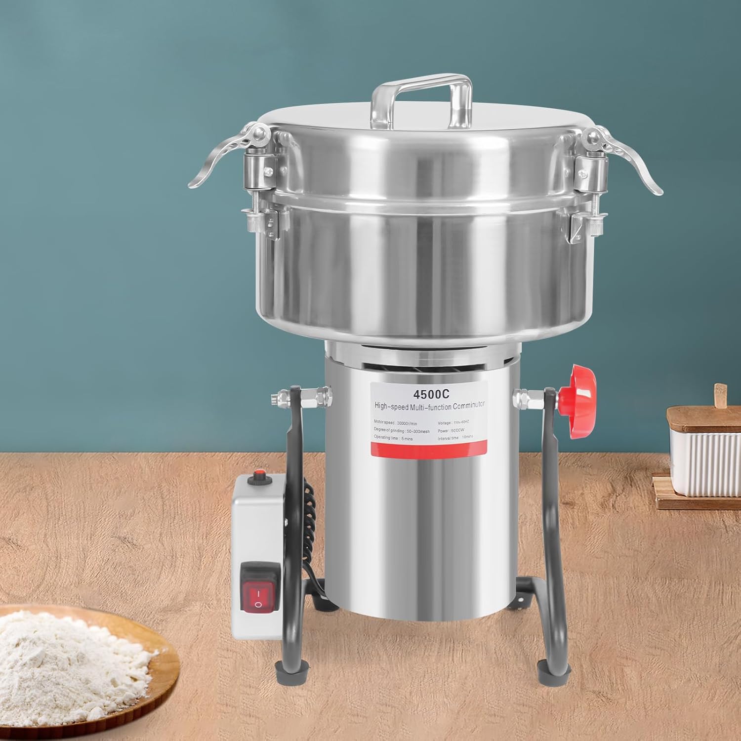 5000W Electric Grain Grinder, 4500g Electric Grain Grinding Machine with 4 Stable Feet and Sleeve Tool,Stainless Steel High Speed Multi function Grain Grinder for Dry Grains, Coffee, Corn