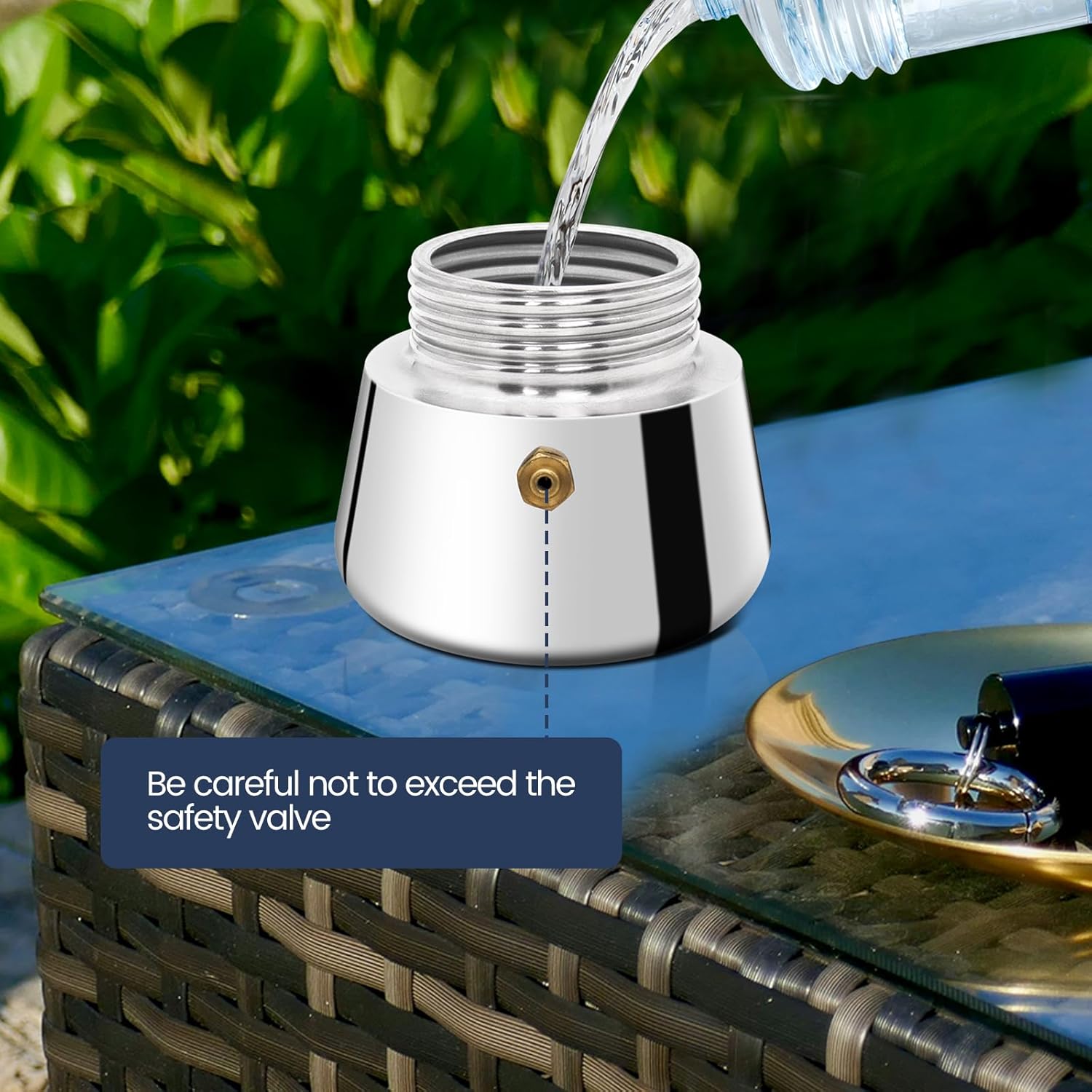 Trustworthy: Stainless steel moka pot is induction safe and very strong and durable. Crafted with semi-handmade craftsmanship, every detail is carefully polished for superior quality
