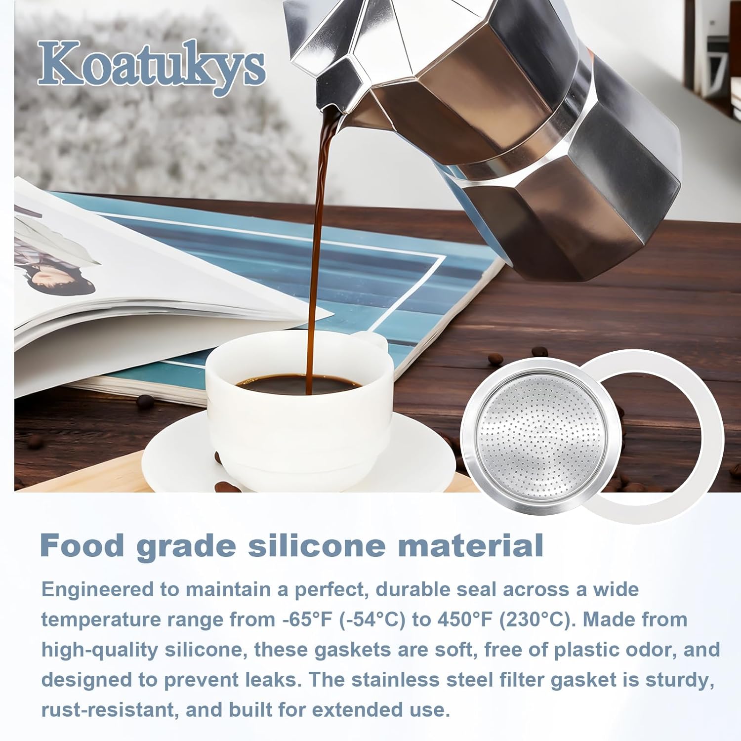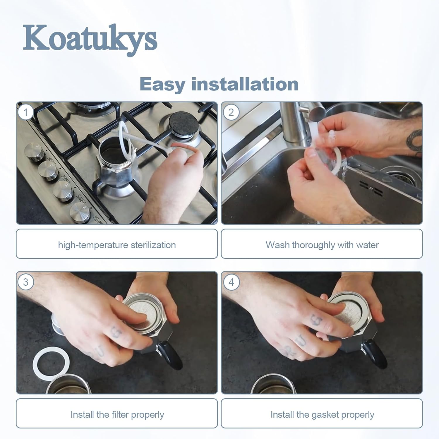 Complete Replacement Kit: Kit contains 5 silicone gaskets and 2 aluminum filter screens, providing a full maintenance set for convenient replacement and extended pot life. All components are durable, and easy to install without tools