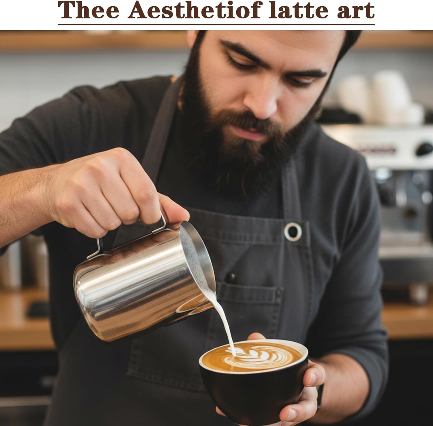【Precision Spout】The elegantly curved pour spout on this milk pitcher ensures smooth, drip-free pouring and optimal foam separation, enabling you to create intricate latte art designs on cappuccinos, lattes, and other specialty drinks.