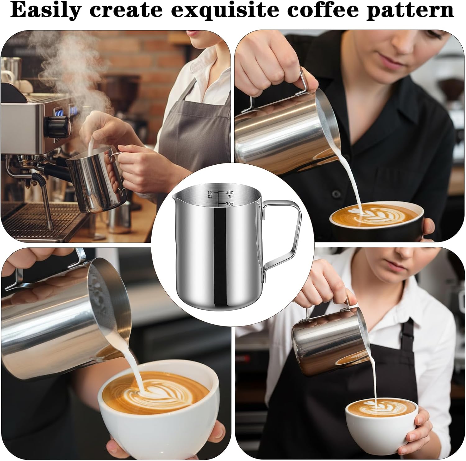【Complete Set】This package includes 6 steaming pitchers, providing ample quantity for high-volume needs, multiple users, or backup replacements, ideal for coffee enthusiasts, home baristas, and commercial establishments.