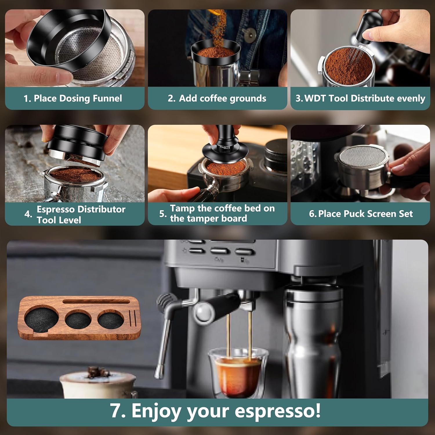 👍Excellent Service:If you have any questions about our 7 Pack Espresso Accessories Kit please feel free to contact us and we will answer your questions as soon as possible.