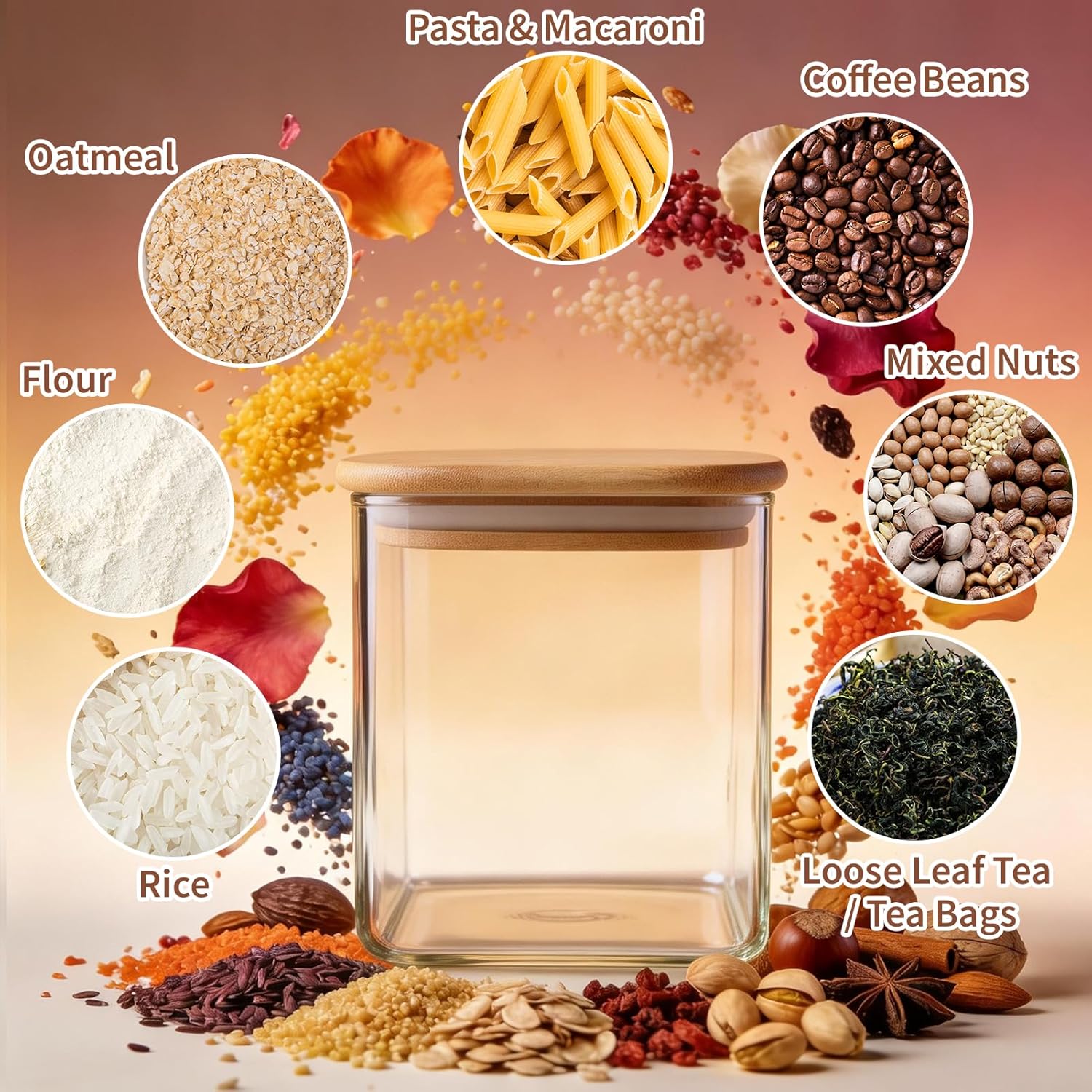Airtight Silicone Seal: Natural bamboo lids with food-grade silicone rings lock in freshness, blocking air and moisture to keep ingredients dry, crisp, and flavourful.