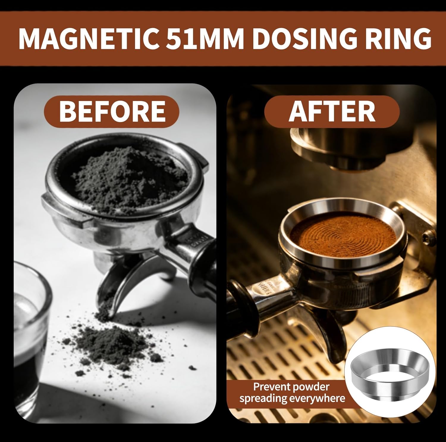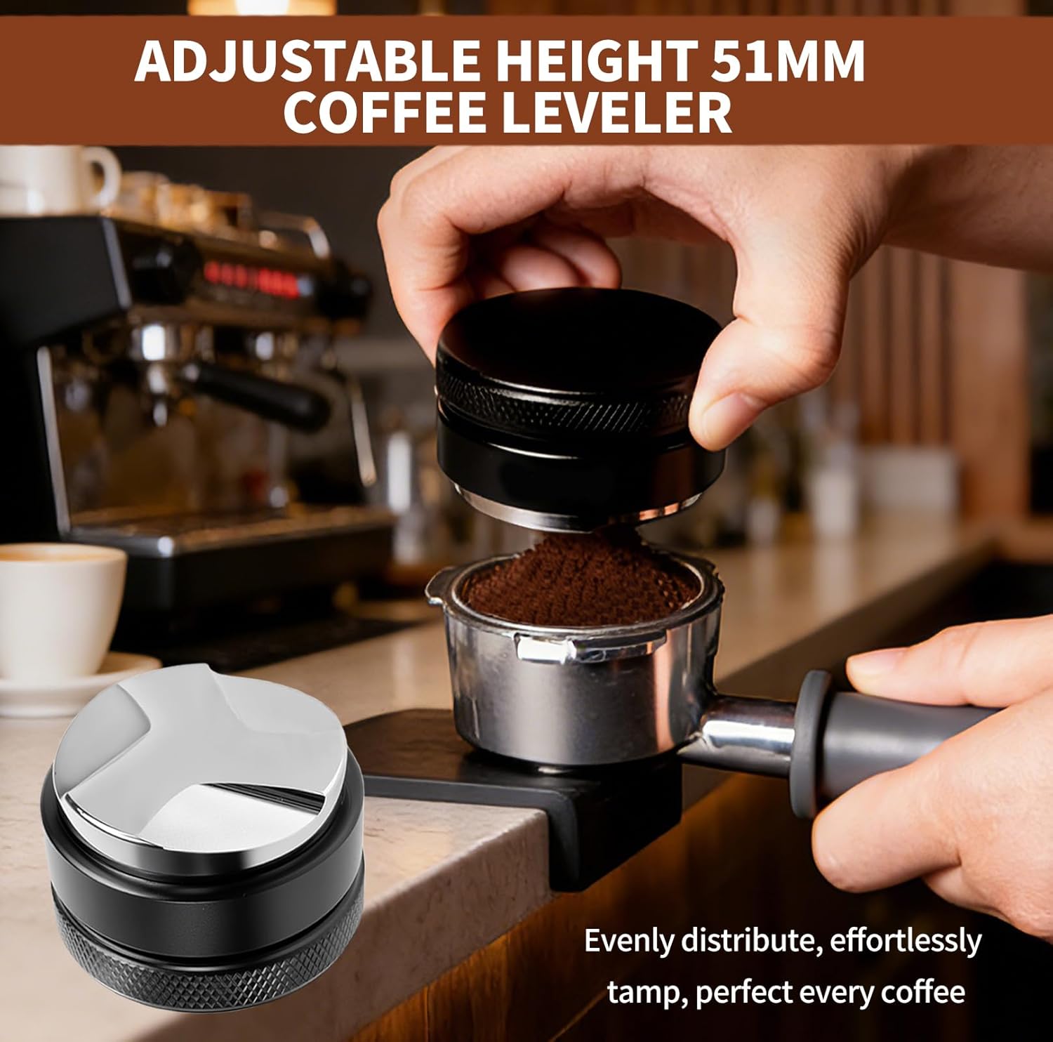 【Adjustable Espresso Distributor】- 51mm Coffee distributor base designed to work with most Inner diameter 51mm portafilters and espresso machine model,evenly redistributes coffee grounds and provide a larger flat surface area for the barista to apply an even tamping pressure using the palm of the hand
