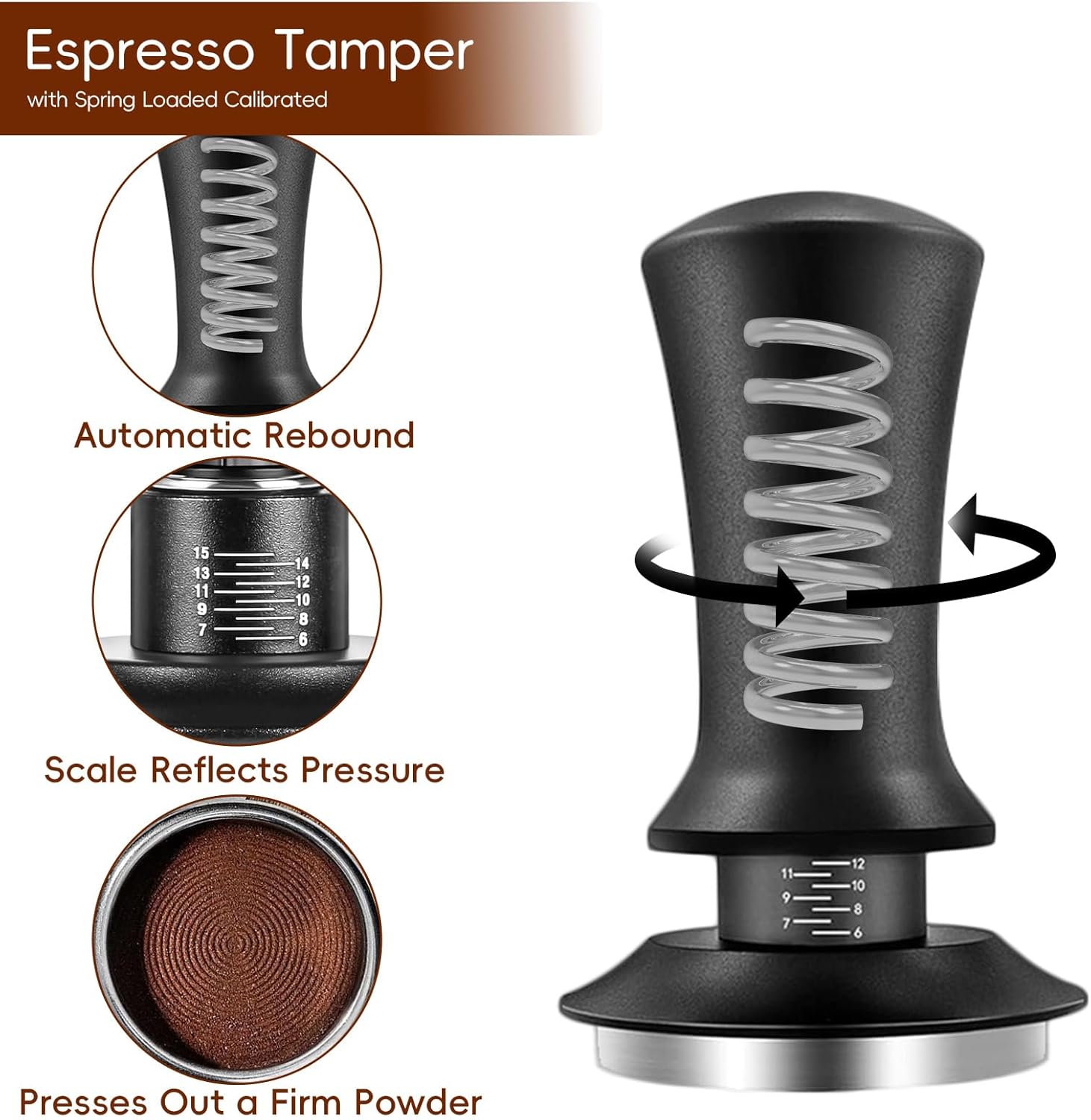 Powder compactor and compactor with scale: Achieve precision tamping with the 54mm espresso tamper tool holds a calibrated spring mechanism and depth markings, which can achieve precise tamping as while as help you fine-tune tamping depth for perfectly balanced espresso extraction