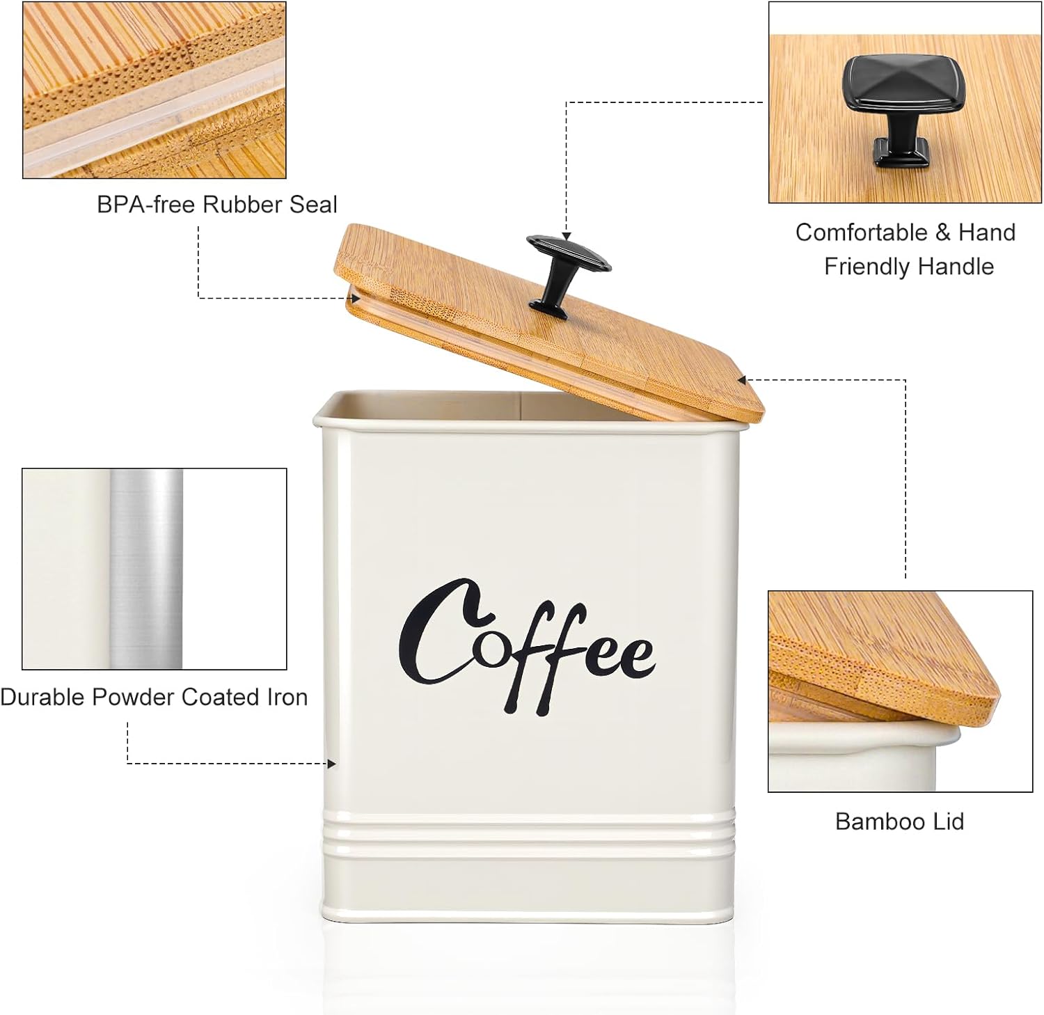 【Durable Seal】Our coffee canister features a durable bamboo lid lined with a silicone gasket. Creates a truly sealed environment, effectively blocking out harmful light, moisture, air, and humidity. This helps preserve the flavor of your coffee longer than open packaging or inferior containers. Your coffee/tea deserves this protection!