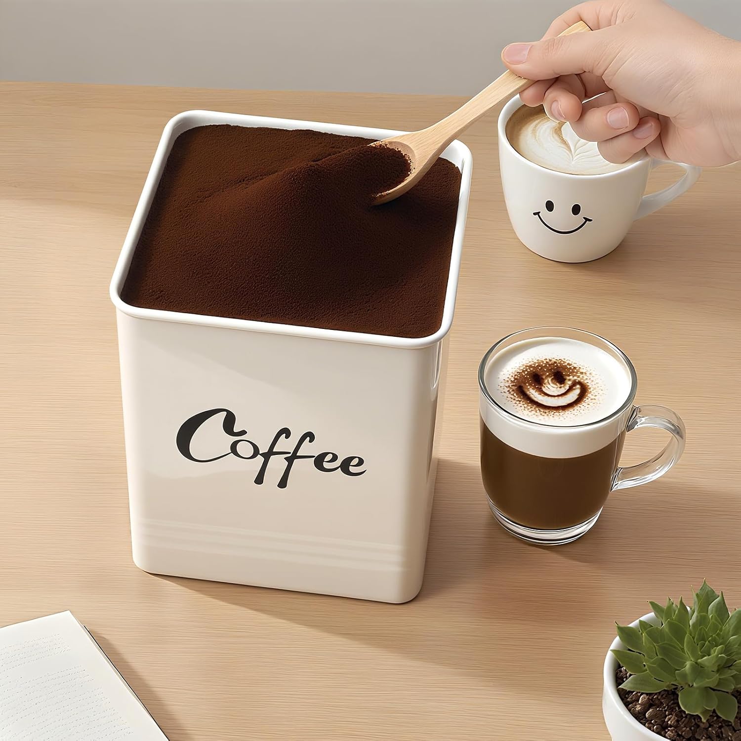 【Ideal Capacity Coffee Container】Generously holds up to 40 oz yet maintains compact external dimensions (W:5.9 x H: 7.8 x D: 6.7in)Scientifically designed square shape ensures maximum utilization of shelf or cabinet space, efficiently organizing your pantry essentials without wasted room. This large coffee container is perfect for storing coffee beans, coffee grounds, or coffee capsules.