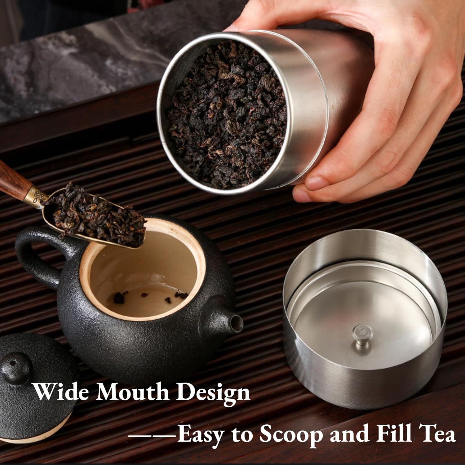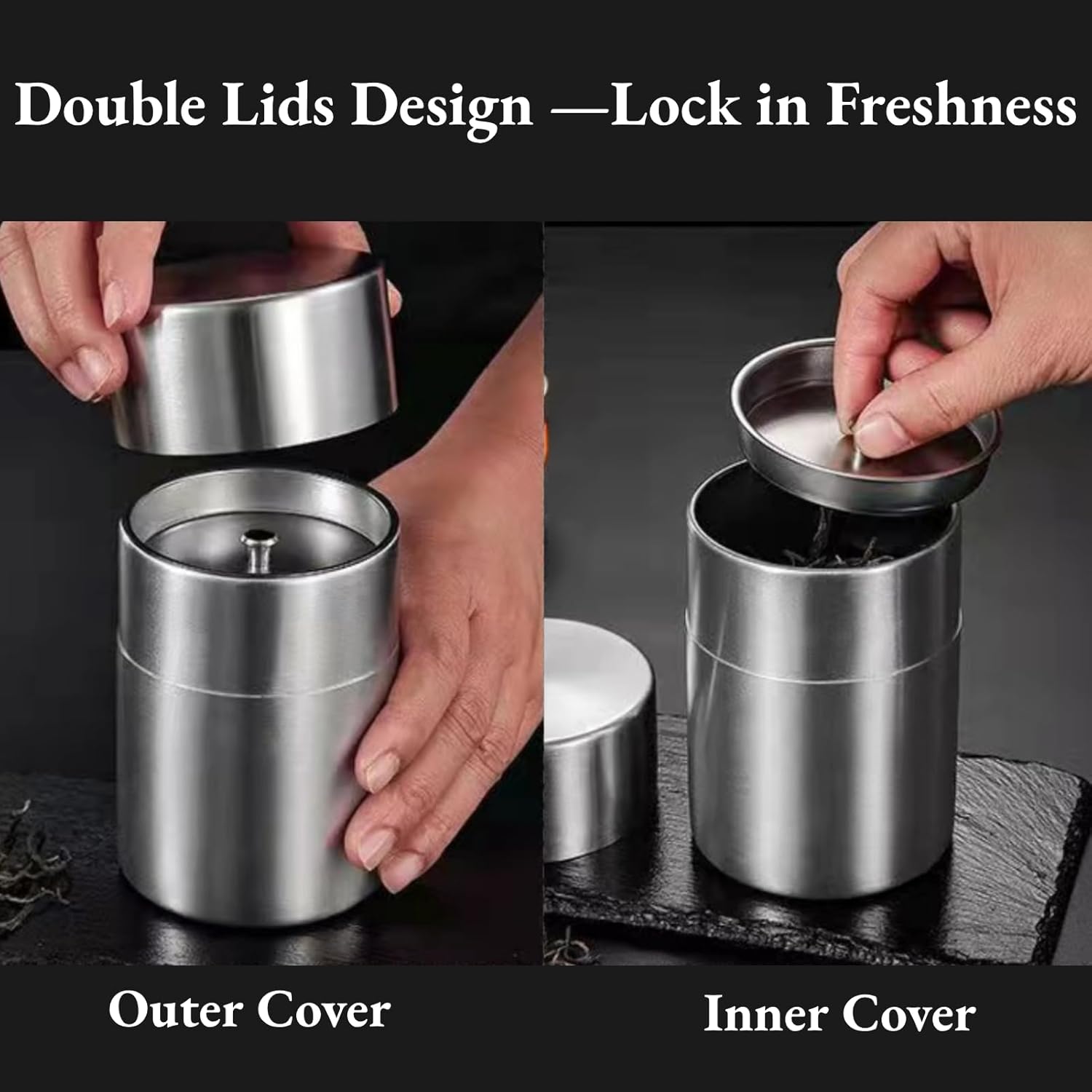 【Stainless Steel Material】The tea tin is made with stainless steel, no rust, . Round, smooth edges do hands