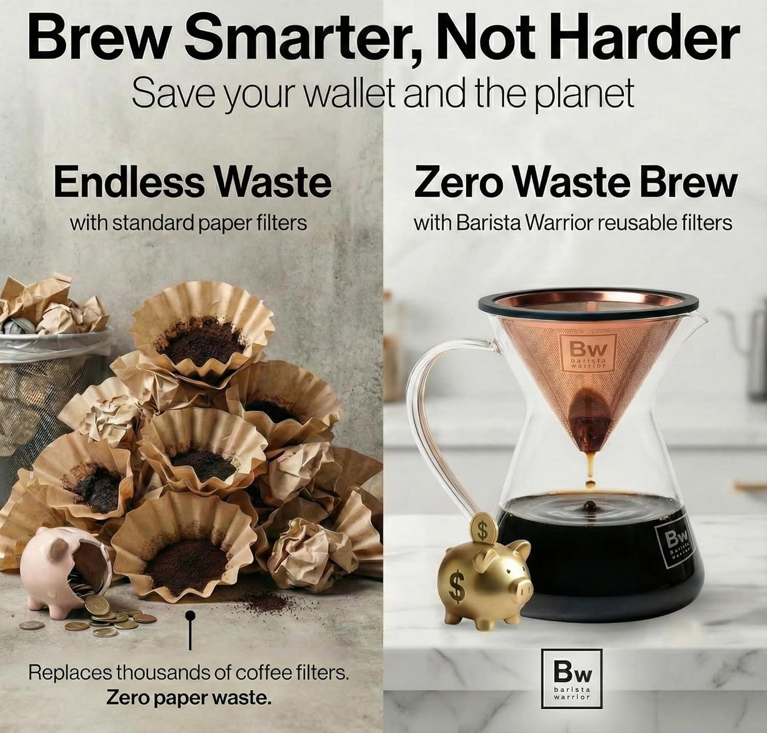 Smart Savings – Each stainless steel metal pour over coffee dripper replaces 25,000 paper options saving you hundreds of dollars while these reusable pour over coffee drippers reduce landfill waste for sustainable brewing