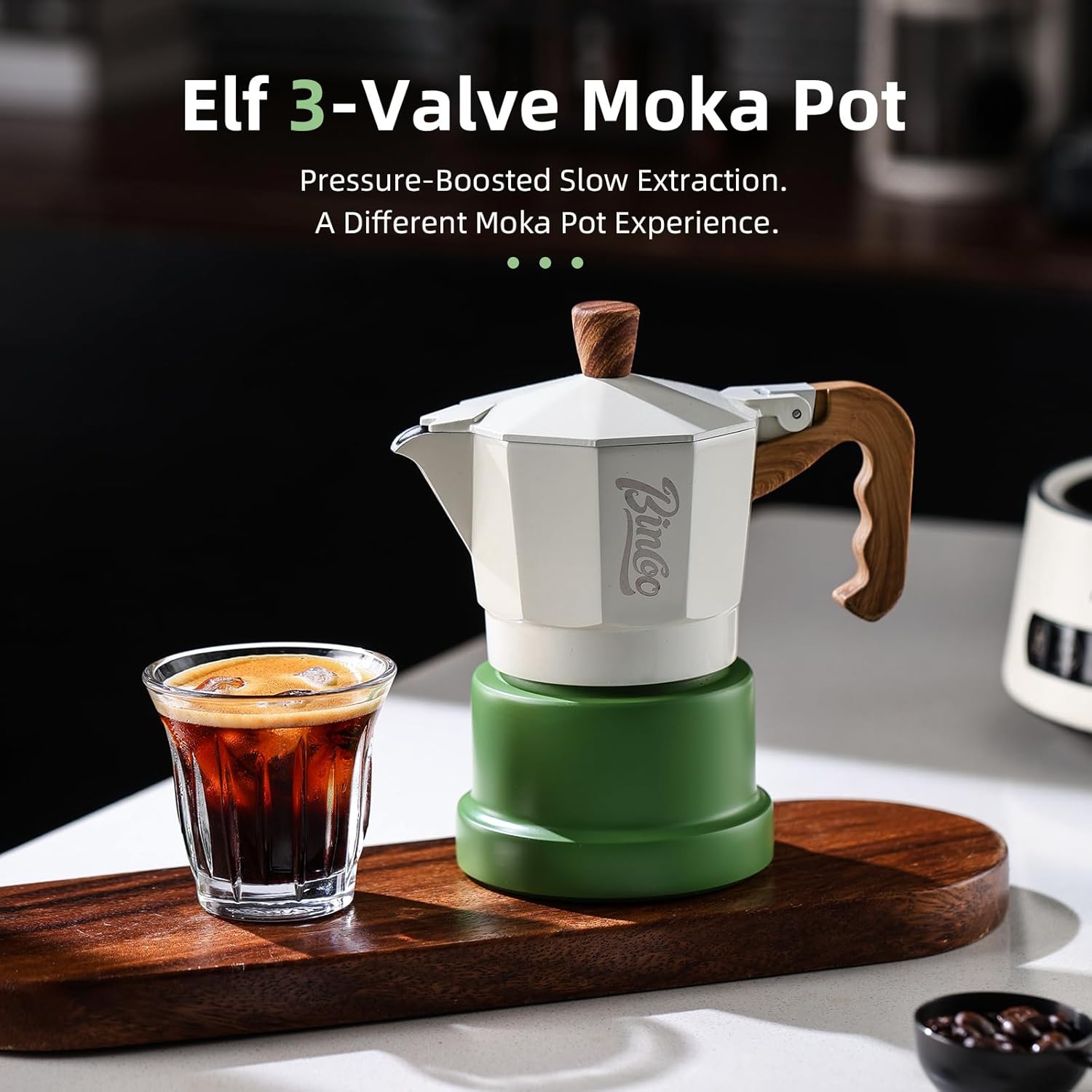 Bincoo Espresso Maker Stovetop,Camping Moka Pot 2 Cup/120ML,Stove Top Espresso Italian Coffee Maker,Easy to Use (White-green)
