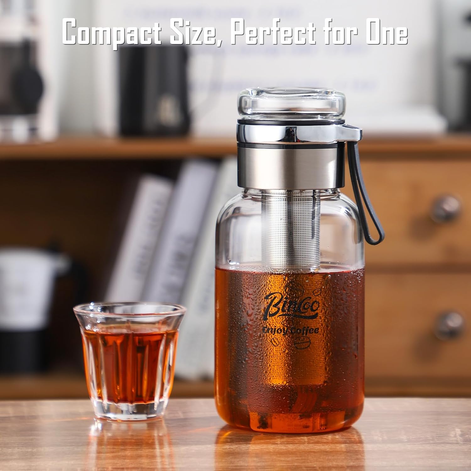 Bincoo Glass Cold Brew Coffee Maker with Extended Fine Mesh Filter, Tea Infuser Bottle Iced Coffee Maker with Thick Borosilicate Glass (500ml/17oz)