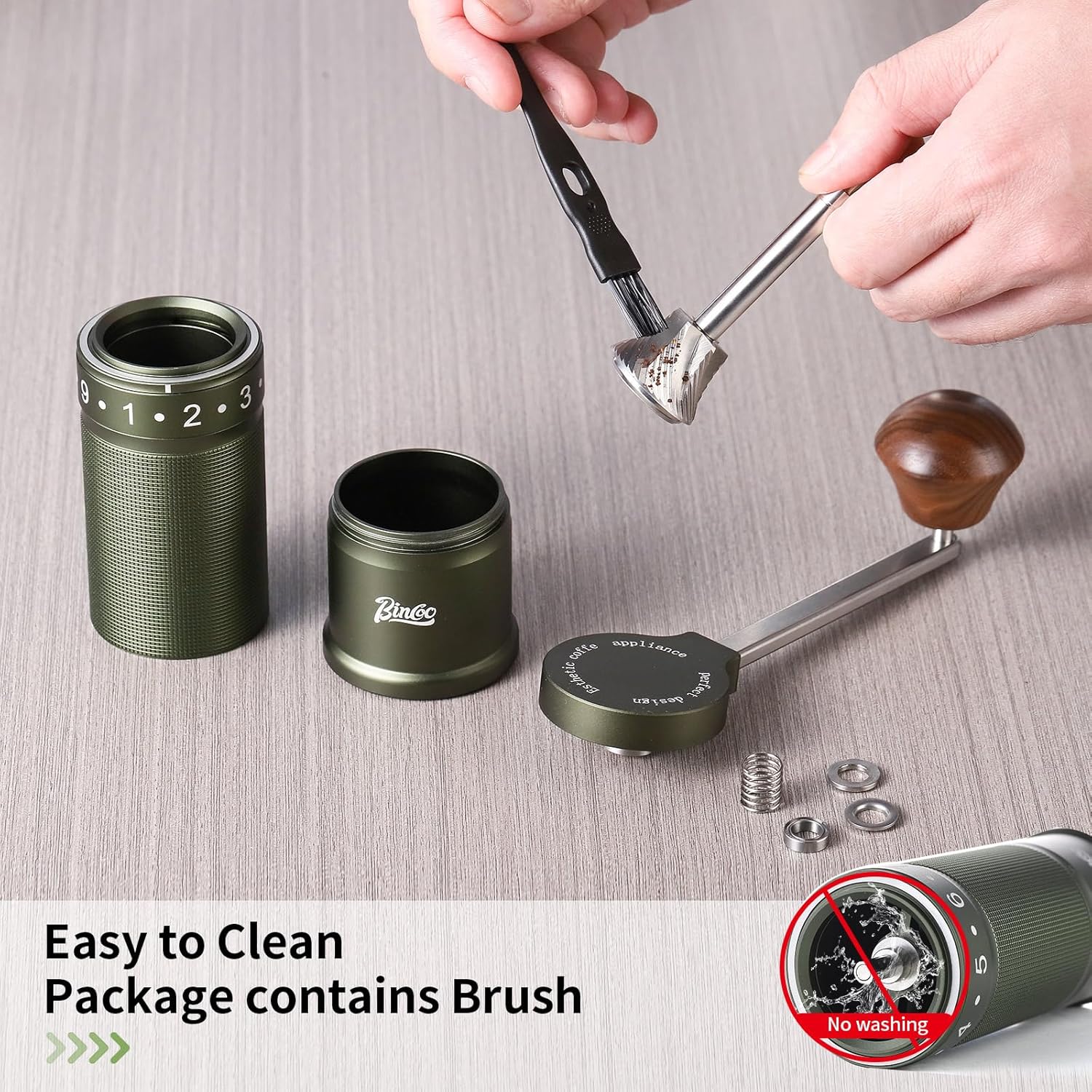 Bincoo Manual Coffee Grinder with Foldable Handle– External Setting Hand Coffee Grinder with Steel Burr,Compact and Portable for Home/Travel/Camping(Green)