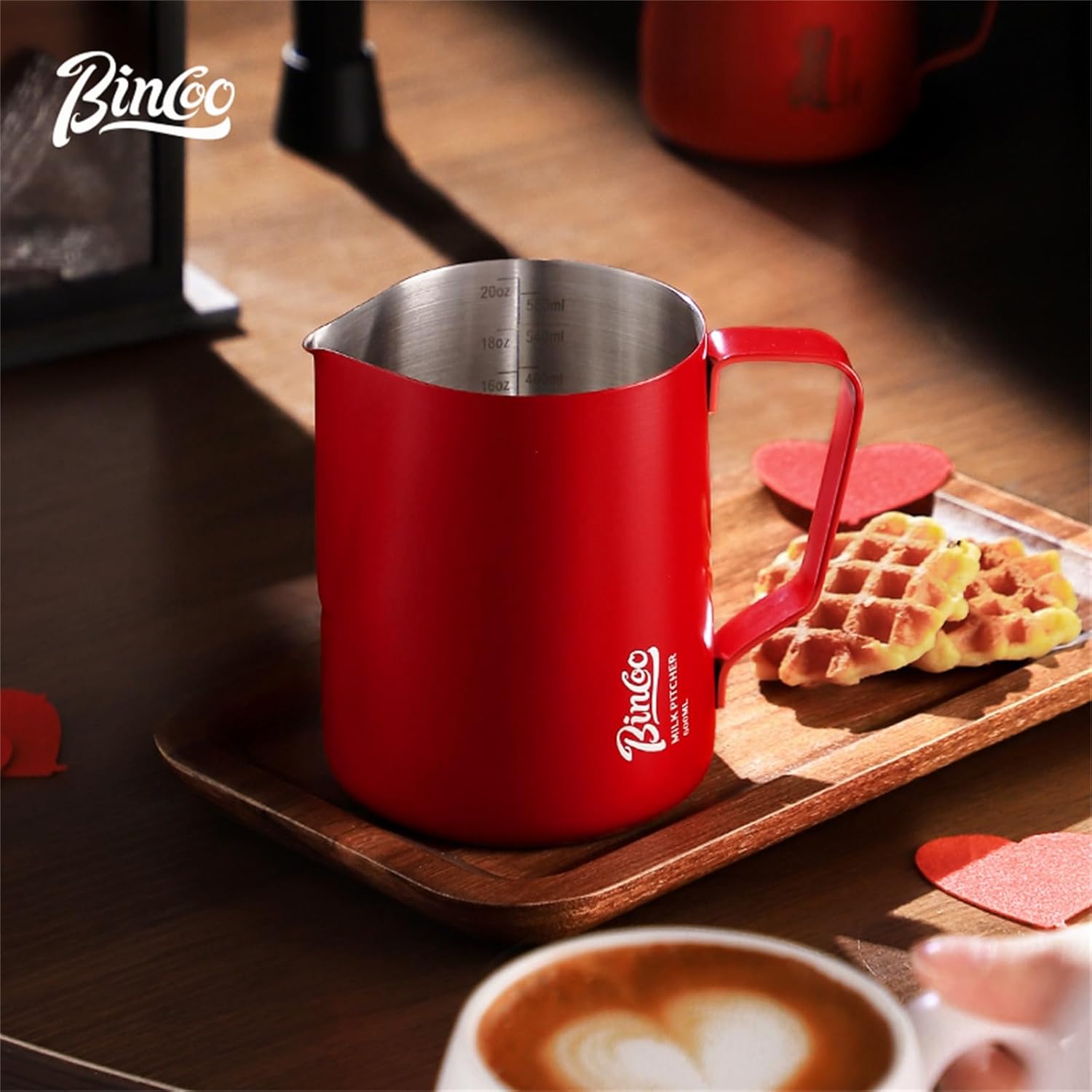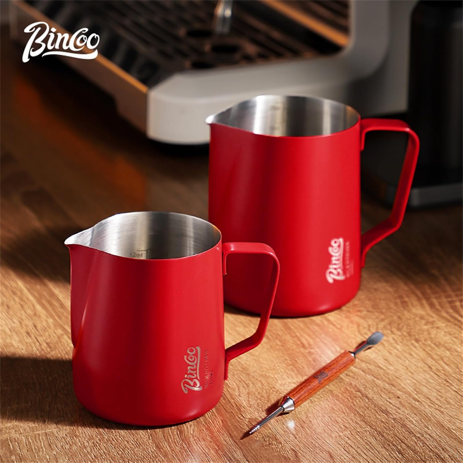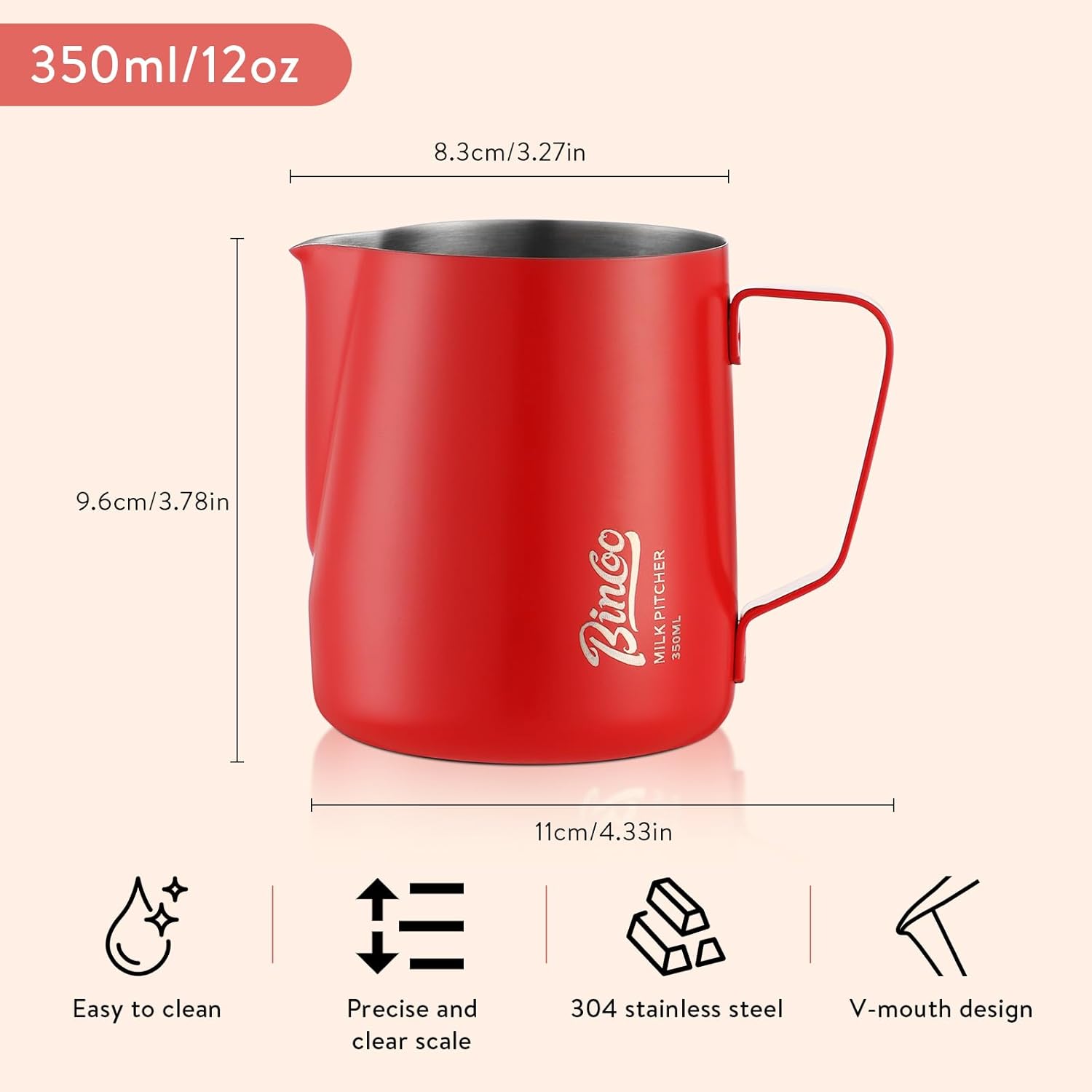 Bincoo Professional 12oz Milk Frothing Pitcher for Latte Art, 304 Stainless Steel Espresso Steaming Jug with Ergonomic Handle & Sharp Spout, Perfect for Beginners & Baristas
