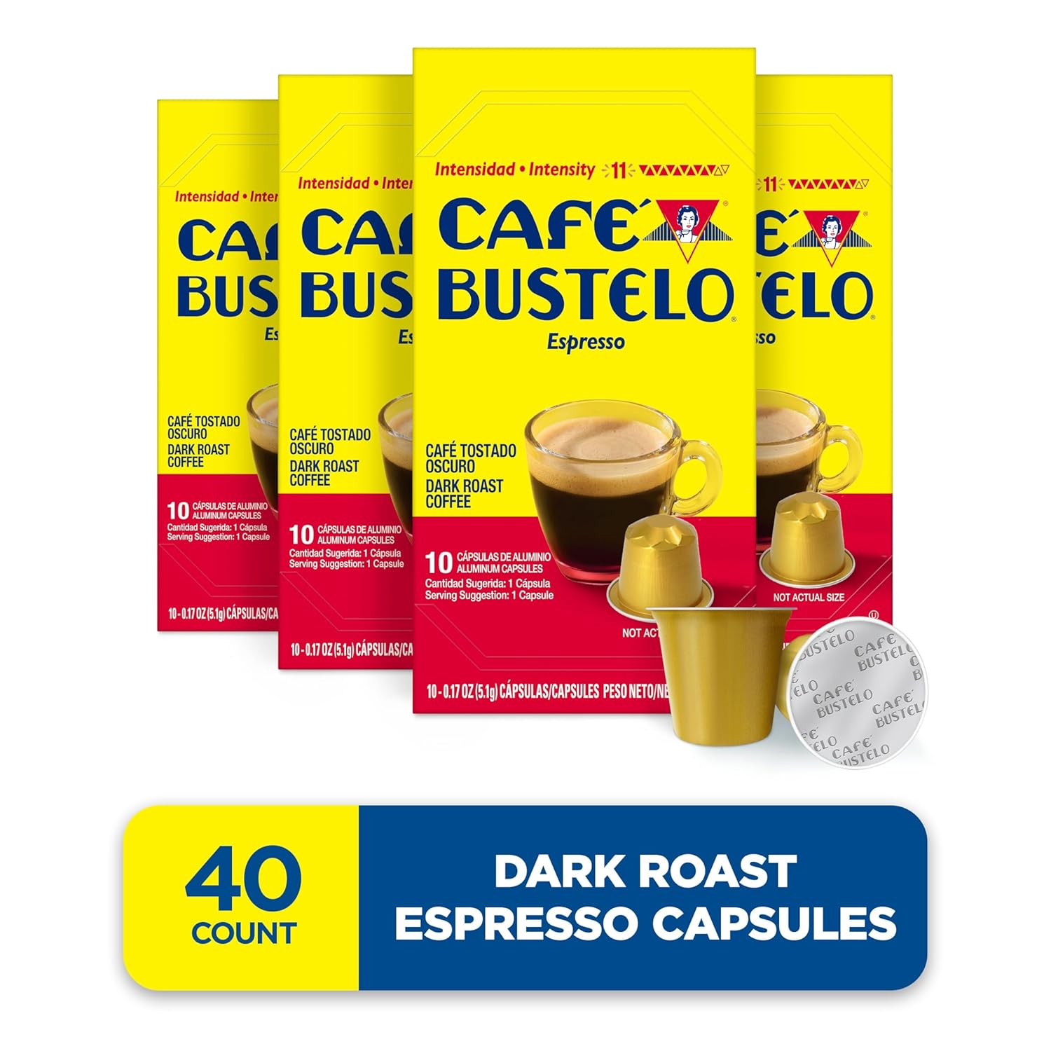 Café Bustelo Aluminum Espresso Capsules, Dark Roast Coffee, Nespresso Original Line Compatible, Intensity 11, 40 Count