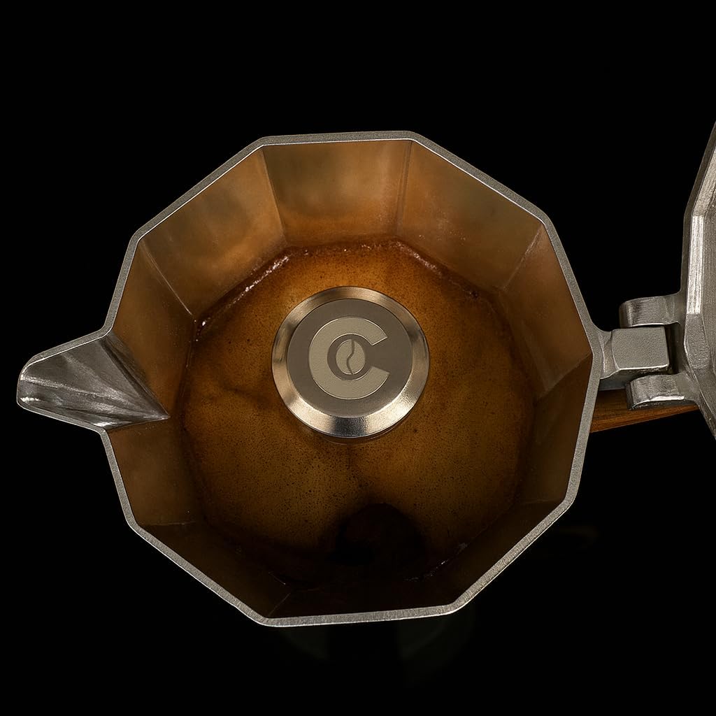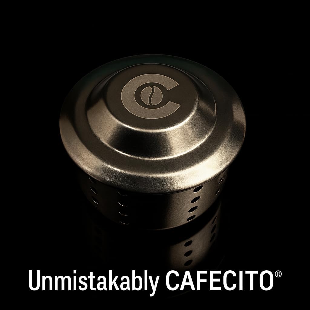 ☕ Cafecito Approved Engraving – Features a precision-engraved “C” with coffee bean design, symbolizing authentic quality and the CAFECITO standard for home baristas – your mark of true moka mastery.