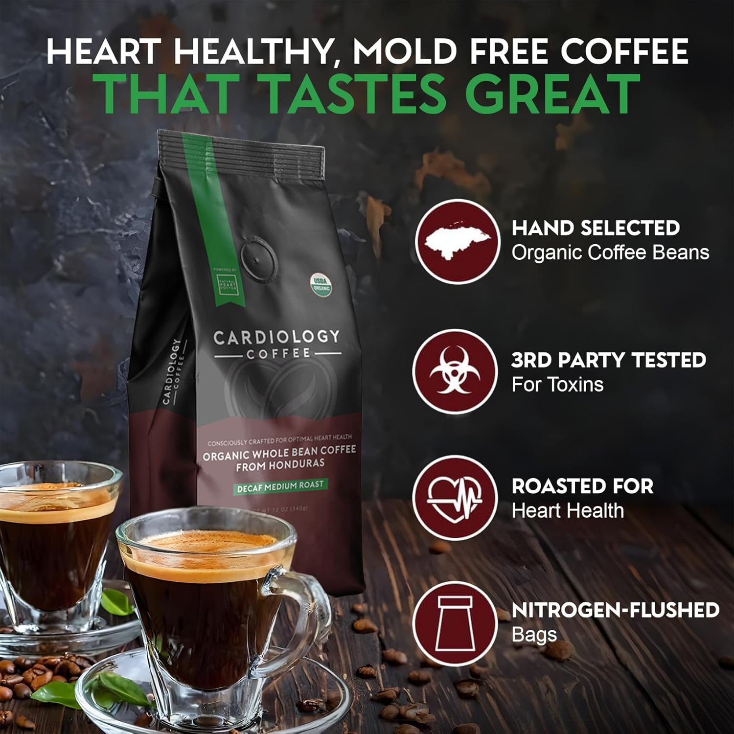 HEART-HEALTHY DECAF COFFEE: Our coffee is crafted by cardiologist Dr. Jack Wolfson and is rich in antioxidants to support cardiovascular wellness. Enjoy a heart-healthy caffeine-free lifestyle while savoring premium organic coffee which also supports in combating oxidative stress.