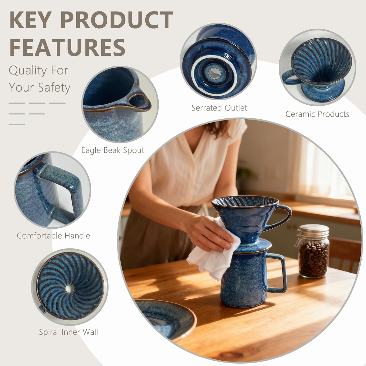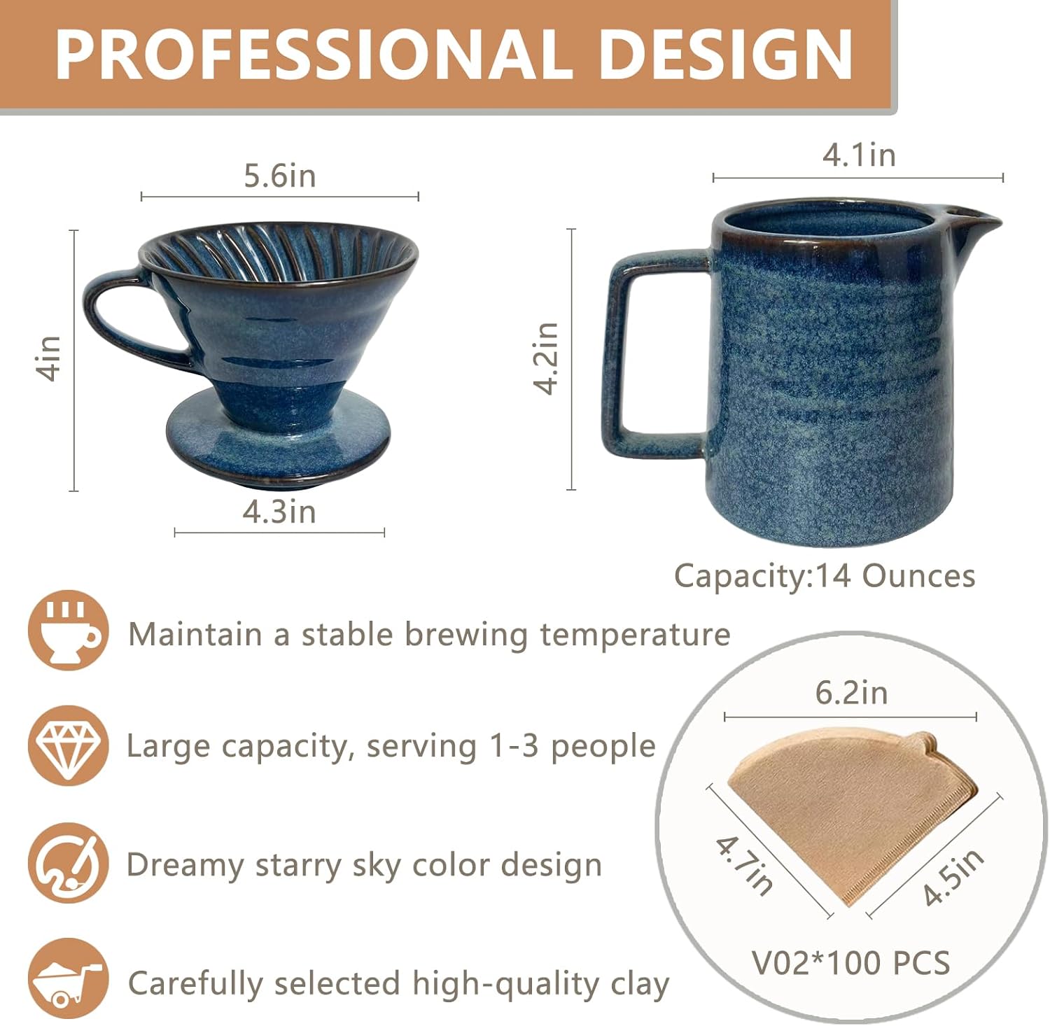 Starry Blue Finish:Featuring a dreamy, celestial starry blue glaze, this pour over set adds artistic elegance to any kitchen, office, or café counter