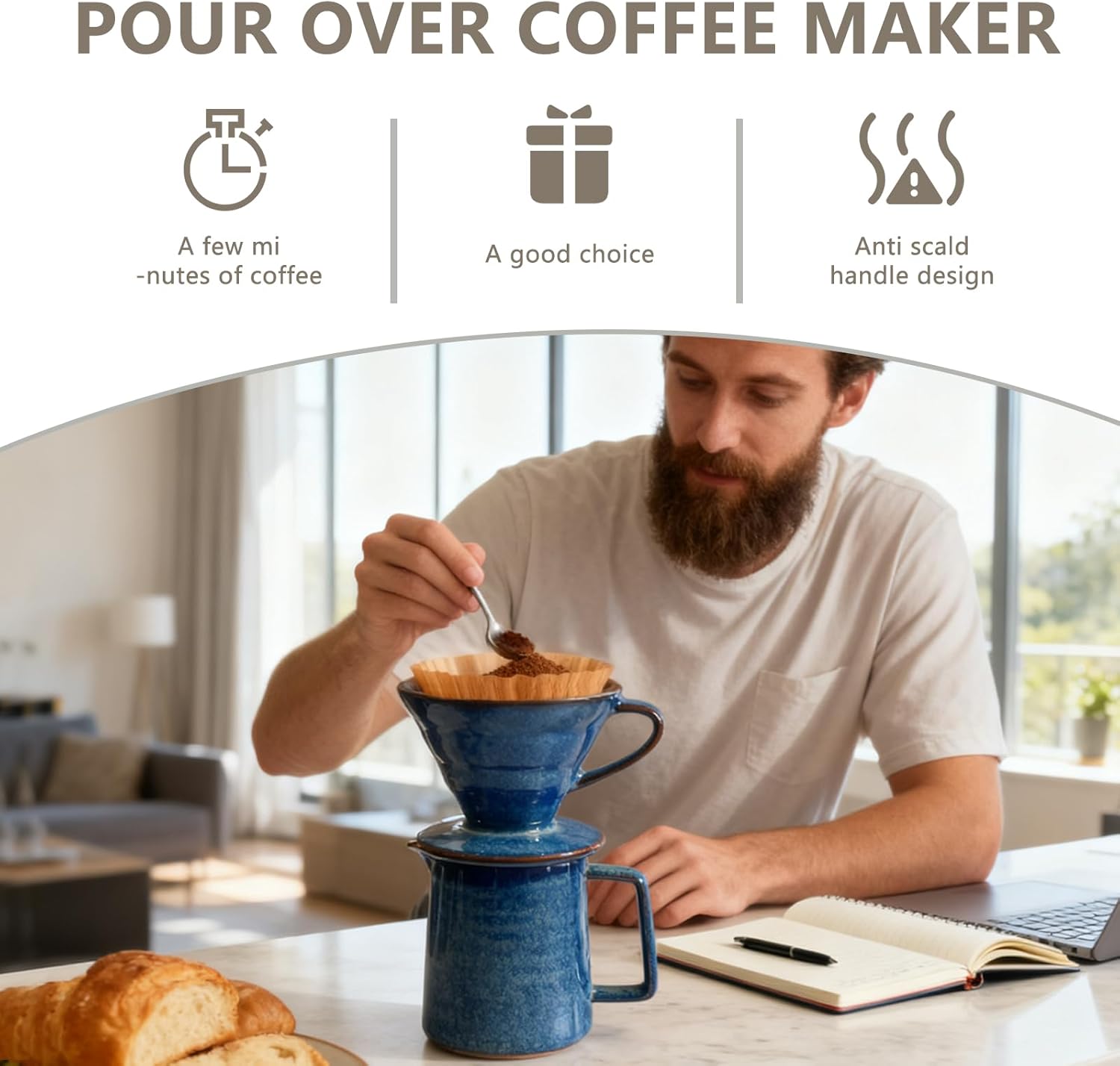 Large Capacity:With a 400ml (14 oz) capacity—larger than most standard ceramic coffee makers—this set is ideal for serving 1 to 3 people. Whether you’re brewing for yourself or guests, this pour-over cone coffee maker delivers convenience and style in every use