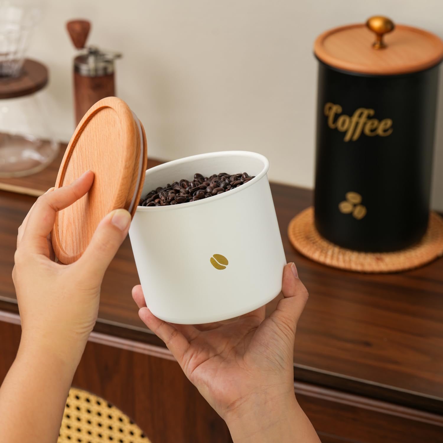 【AIRTIGHT SEAL FOR MAXIMUM FRESHNESS】Features a natural wood lid with a food-grade silicone gasket to create a truly airtight seal. Effectively blocks out light, moisture, air, and humidity to preserve the rich aroma and flavor of your coffee longer than standard containers.