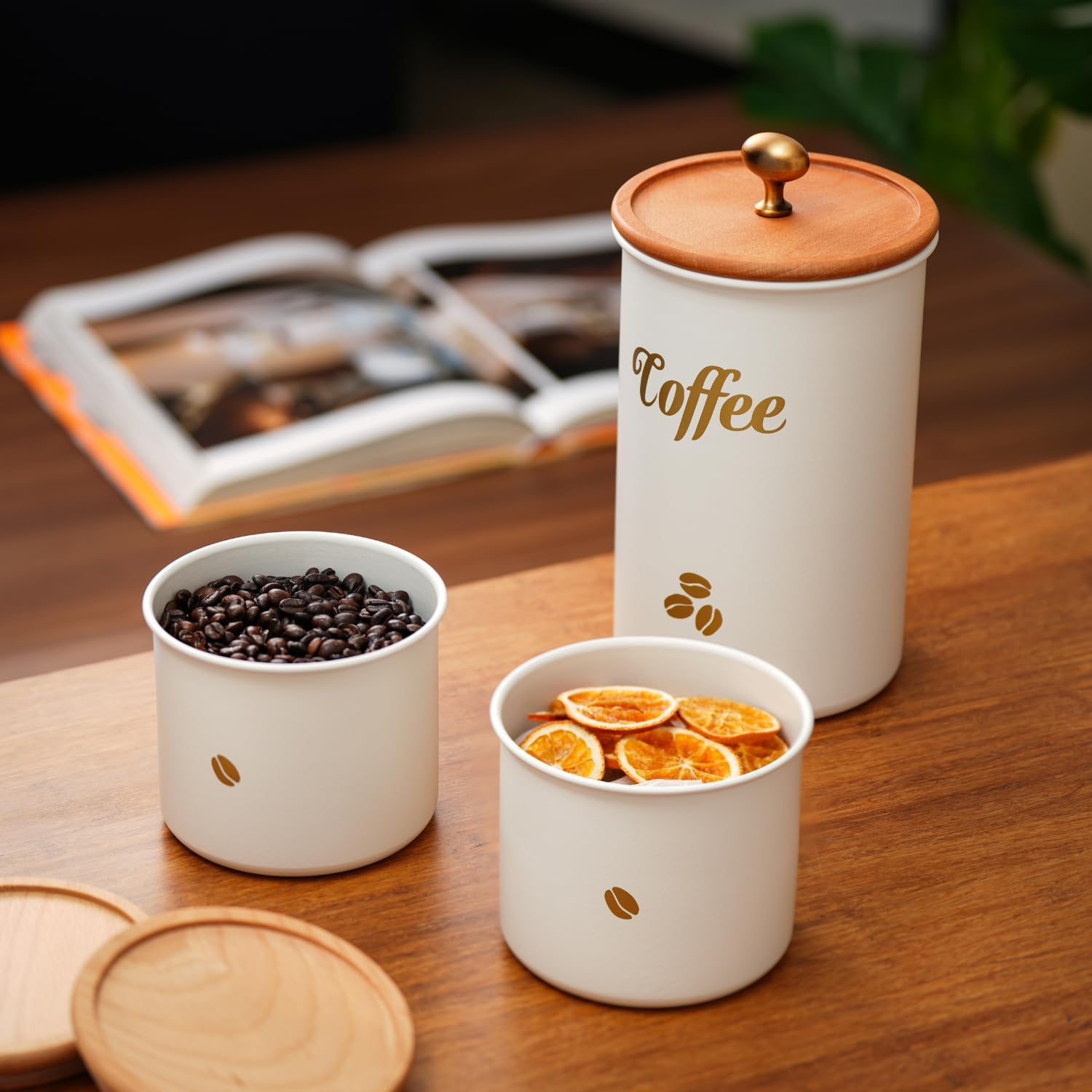 【MULTI-PURPOSE & DECORATIVE STORAGE】More than just coffee storage—these sealed canisters are ideal for tea, sugar, flour, snacks, or other dry goods. A functional and decorative addition to your kitchen counter, coffee bar, or pantry, helping keep your space tidy and clutter-free.