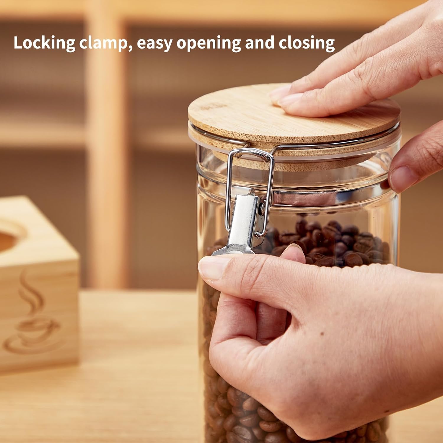 LEAK-PROOF DESIGN: Fully closed leak-proof cap with locking clasp and silicone ensures better sealing and effective leakage prevention, allowing you to store coffee beans, pasta and other food with peace of mind. Solve the problem of bottle gap, while using the latch to open and close the cap more easily.