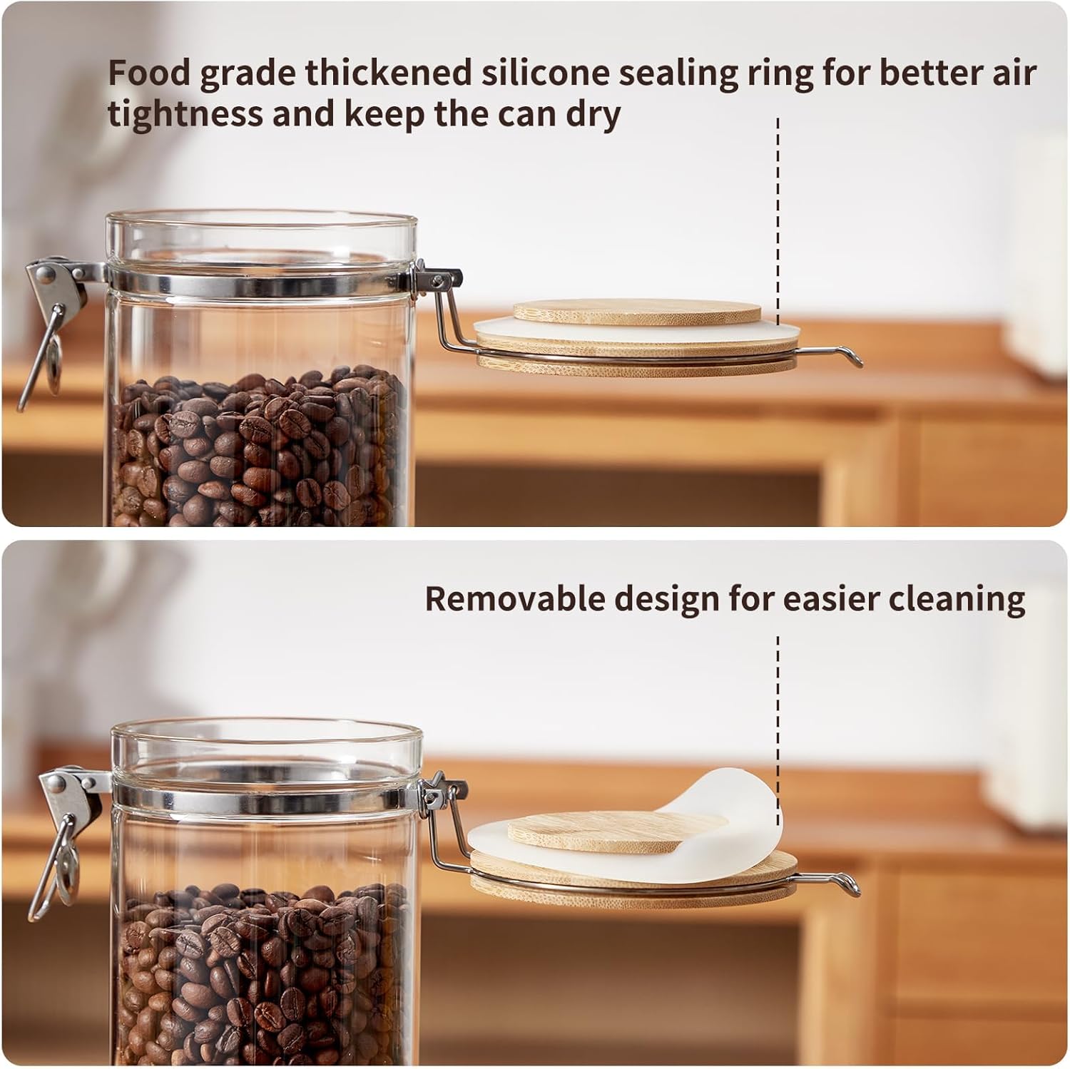 PREMIUM QUALITY MATERIAL: Made of premium borosilicate glass with a 50 fluid ounces. capacity, these coffee jar are thicker and more durable for safe long-term food storage. Clear glass design is easy to view the contents inside. Designed with a large opening for easy access to food.