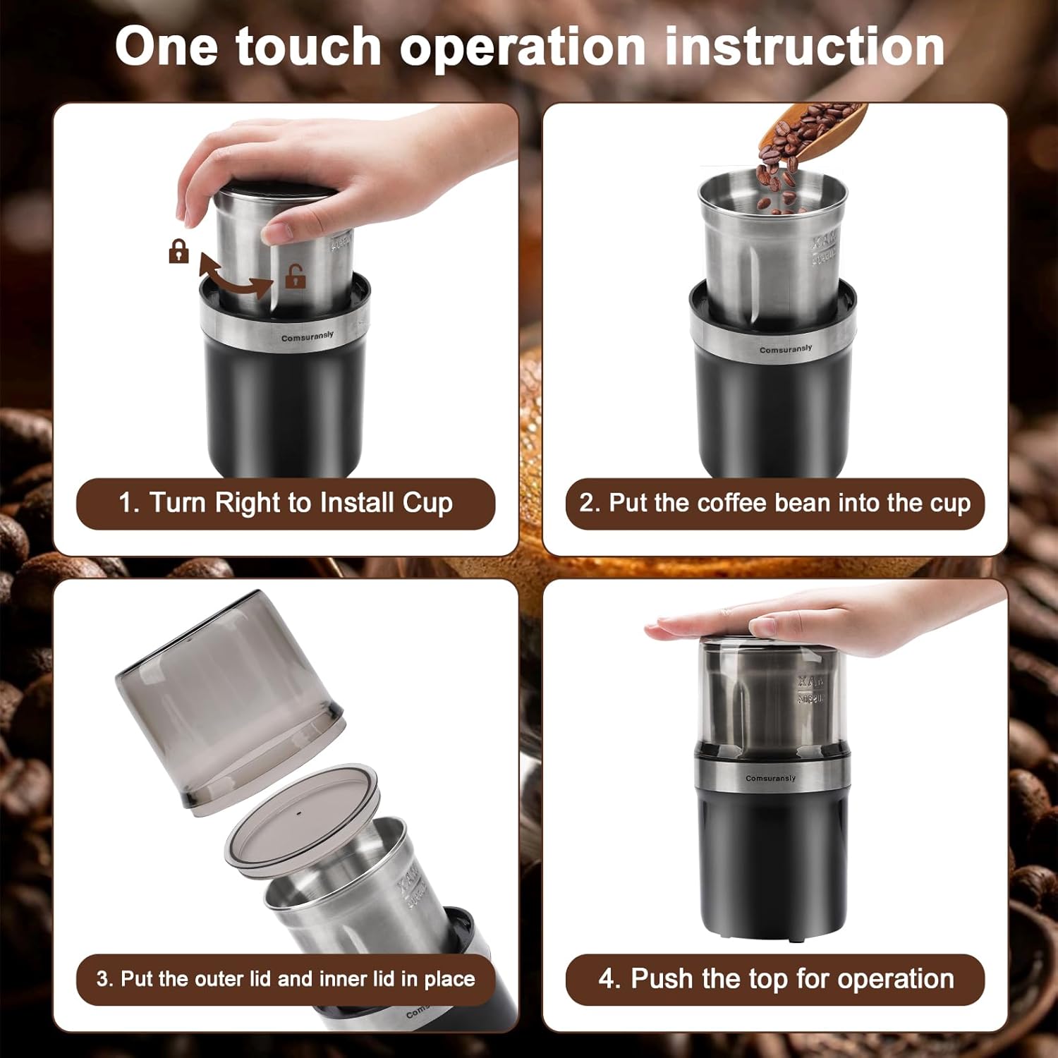WORRY-FREE SHOPPING – This electric coffee grinder provides with overheat automatic shut off protection to verify you’re protected. We also provide 7×24 hours customer service your purchase is solid guaranteed