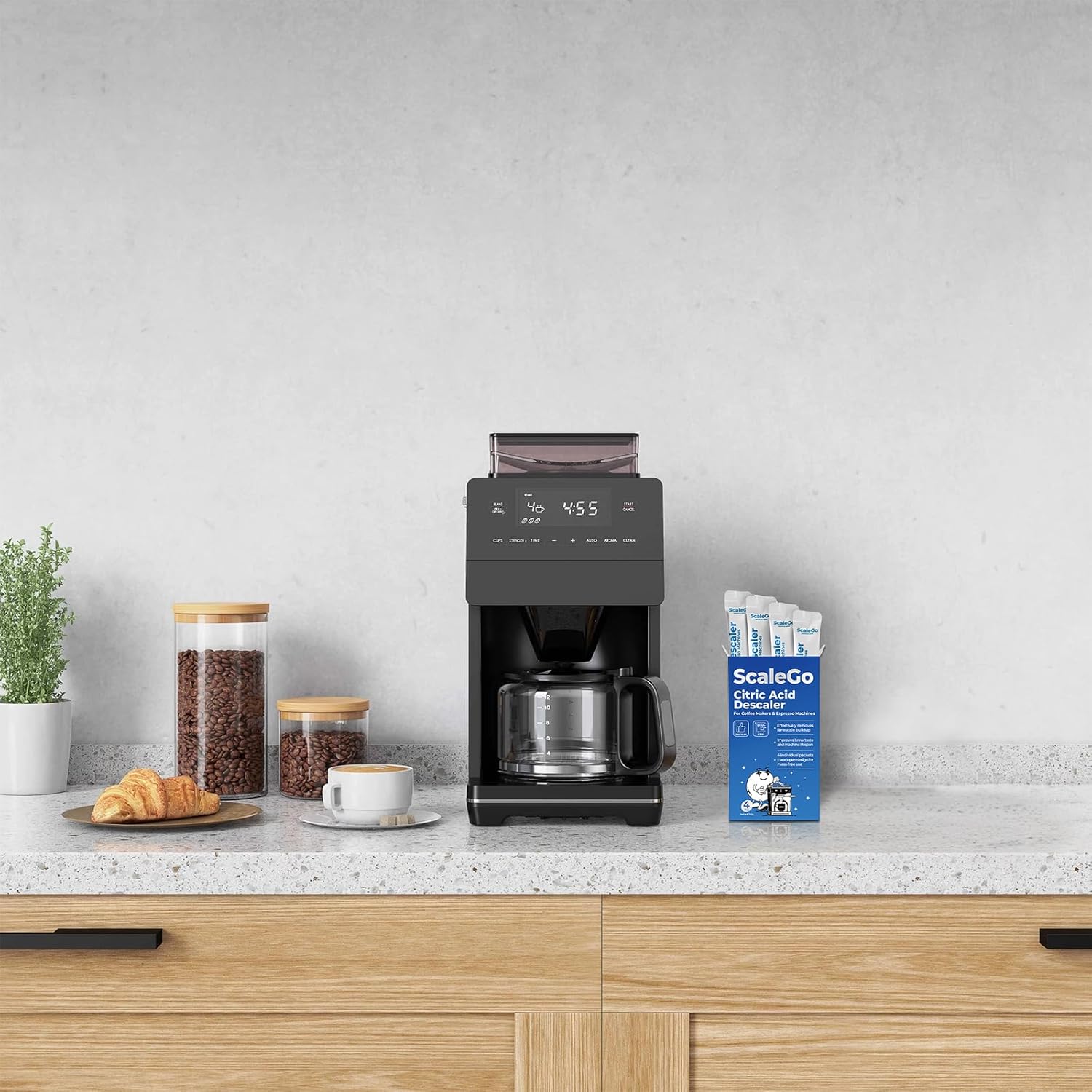 Coffee Machine Cleaner & Descaler | Citric Acid Descaling Powder | Pre-measured Package for Mess-Free Use & Storage | Removes Limescale | Compatible with Keurig, Nespresso, Breville | 4 Uses