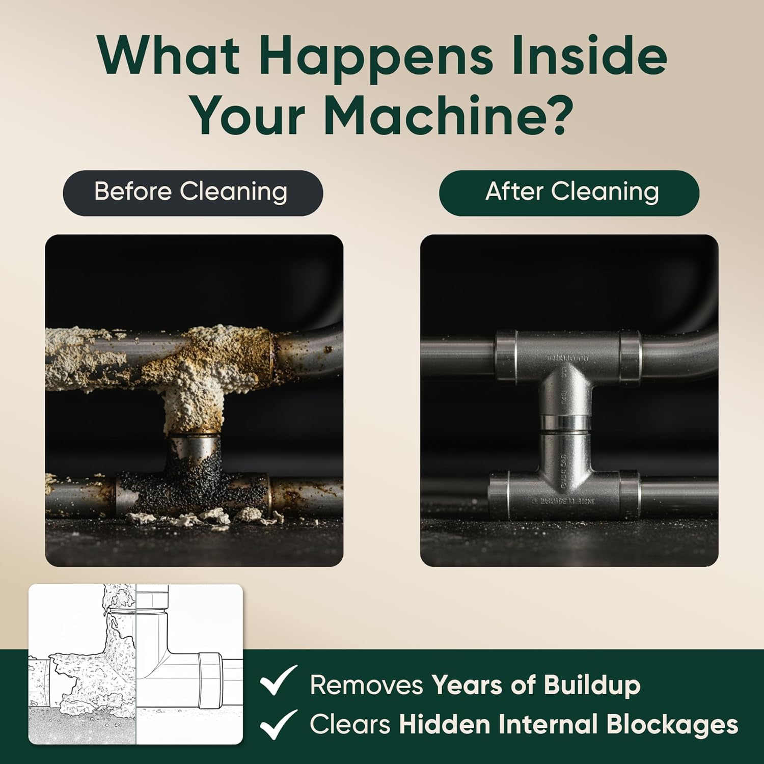 Powerful Descaling Tablets: Deep cleans internal components; removes calcium deposits, mineral scale, and coffee oil; improves brewing efficiency and extends machine life