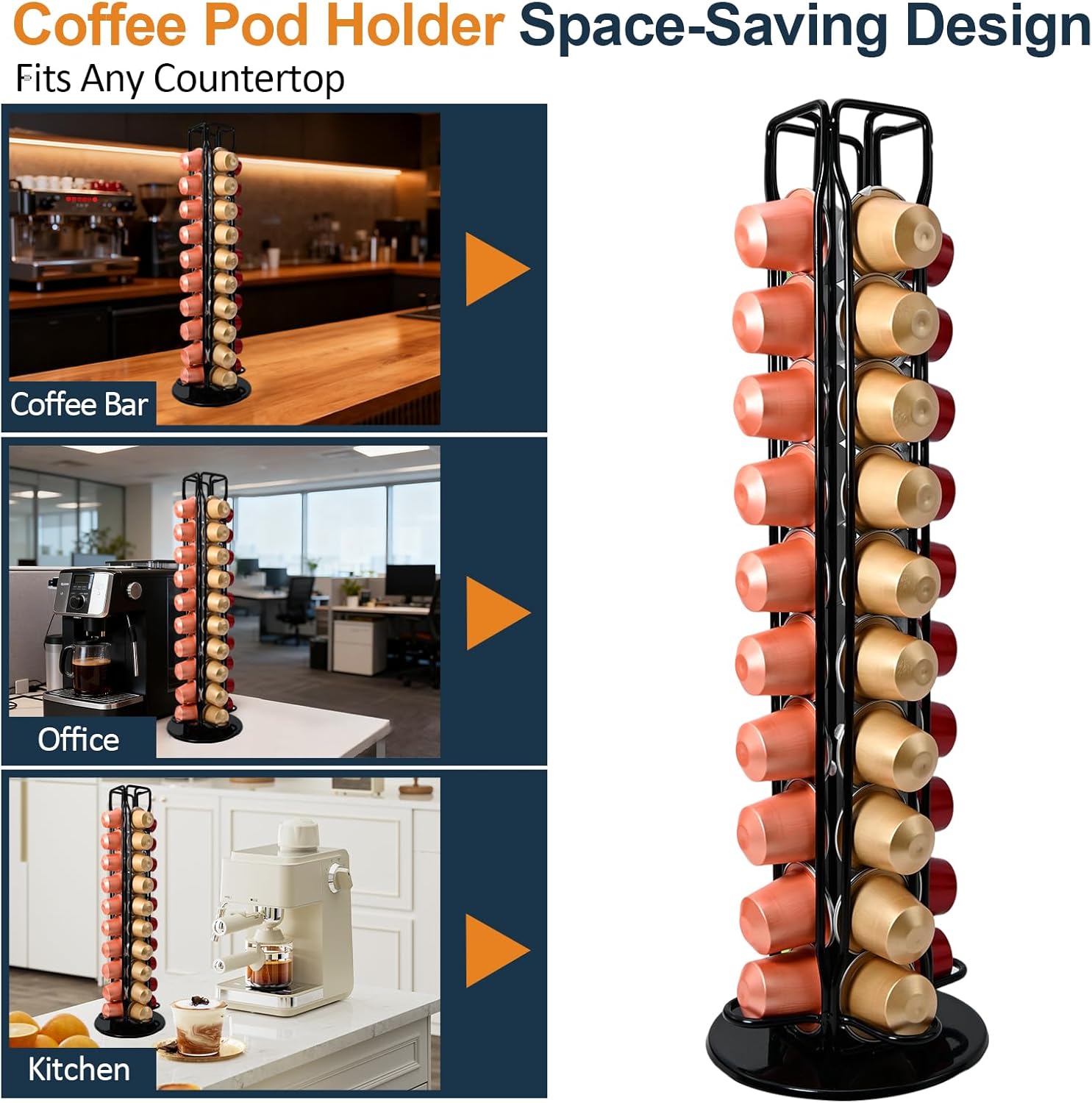 Versatile for Multiple Settings: Perfect for kitchen countertops, office coffee corners, or coffee bars. Blends seamlessly with different décor styles while keeping your capsules organized.