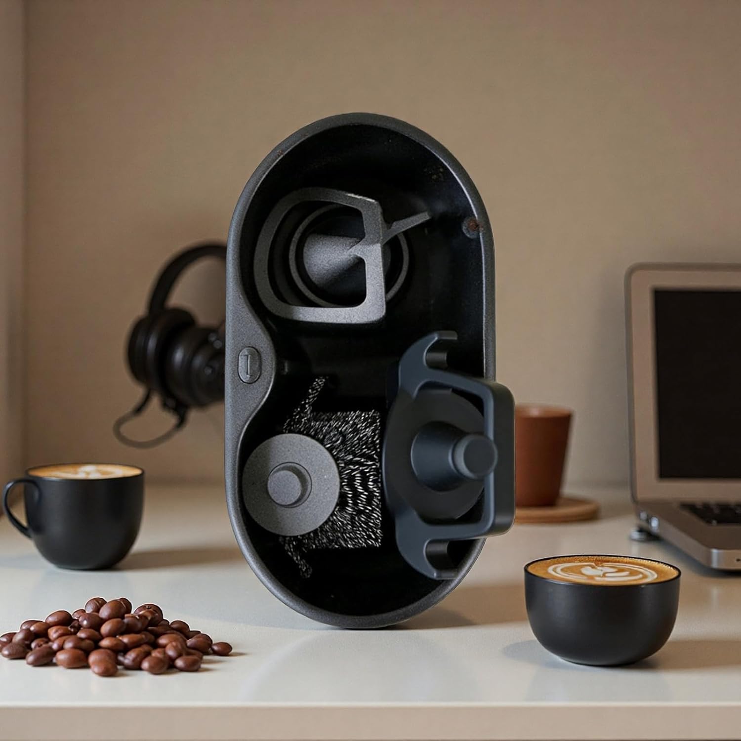 Anti-Spill Silicone Grounds Catcher: Features a Grooved, Non-slip Silicone Tray That Securely Catches Loose Coffee Grounds. This Prevents Countertop Messes and Creates a Stable, Dedicated Cleaning Station for a Tidier Coffee Prep Area.