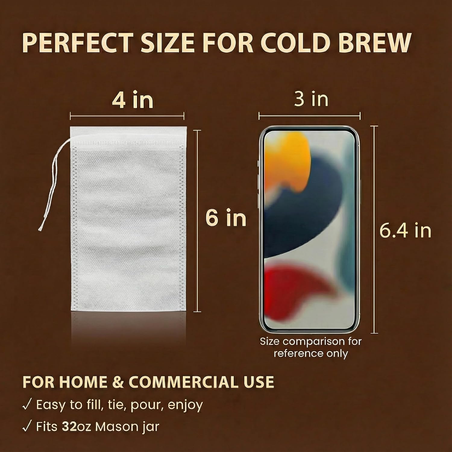 Cold Brew Bags, Cold Brew Coffee Filter Bags, Disposable Fine Mesh Drawstring Pouches, Fits Mason Jars & French Press, Ideal for Tea, Herbs & Spices (4 * 6 Inch)
